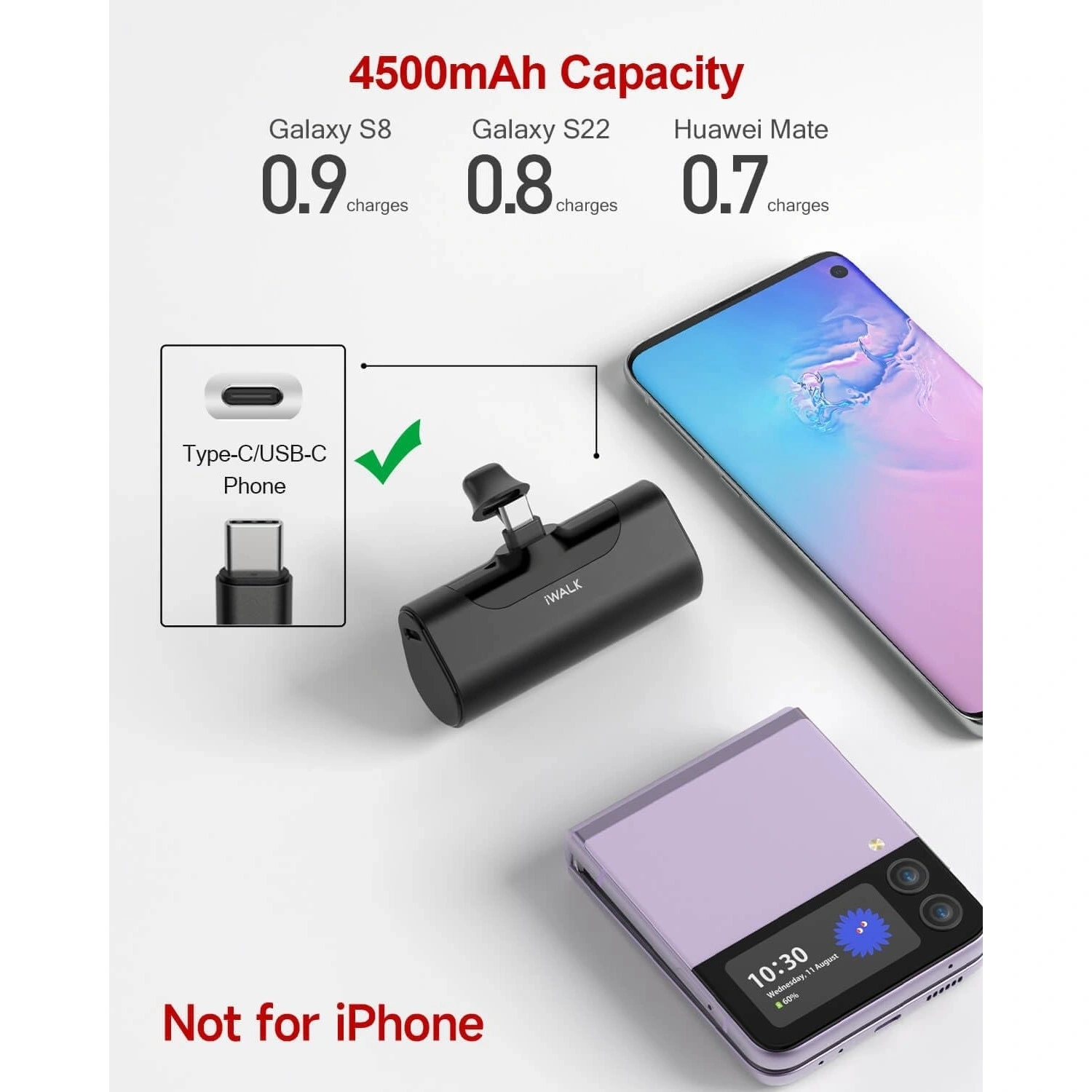 iWALK 4500mAh Portable Charger USB C Battery Pack White