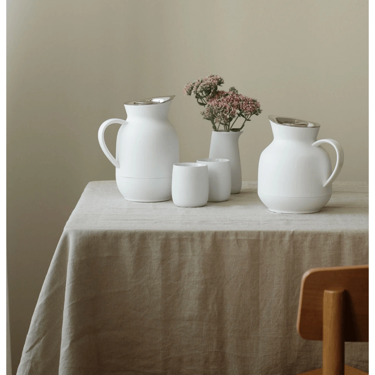 ترمس أمفورا بسعة 1 لتر باللون الأبيض الناعم يجمع بين الأداء العملي والتصميم الاسكندنافي الكلاسيكي. مثالي لتقديم القهوة، يتميز بعازل زجاجي مزدوج الجدار يحافظ على الحرارة لساعات طويلة، مع مقبض مريح لتقديم أنيق وسهل.