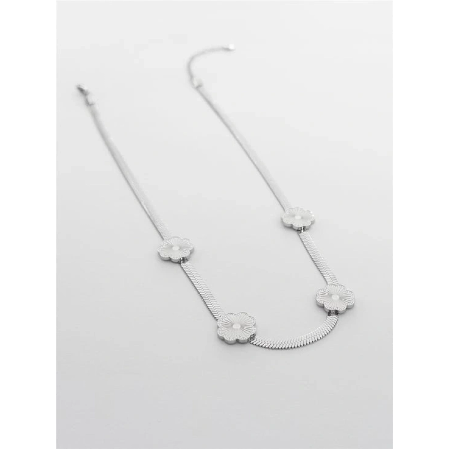 قلادة من ستانلس ستيل عالي الجودة - 45 سم - مع وردات فضيه - باللون الفضي
