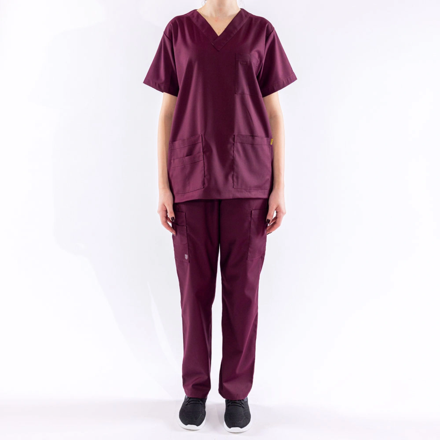 طقم طبي للجنسين بلون خمري، مصنوع من قماش ليكرا عالي الجودة لمنحك راحة ومرونة طوال اليوم. يتكون من بلوزة نصف كم بتصميم مريح مع جيوب عملية لتخزين الأدوات الأساسية، وسروال طبي بقصة مريحة وجيوب إضافية لسهولة الاستخدام. يتميز بخامة قابلة للتمدد توفر تهوية مثالية، مما يجعله خيارًا مثاليًا للعاملين في المجال الطبي.