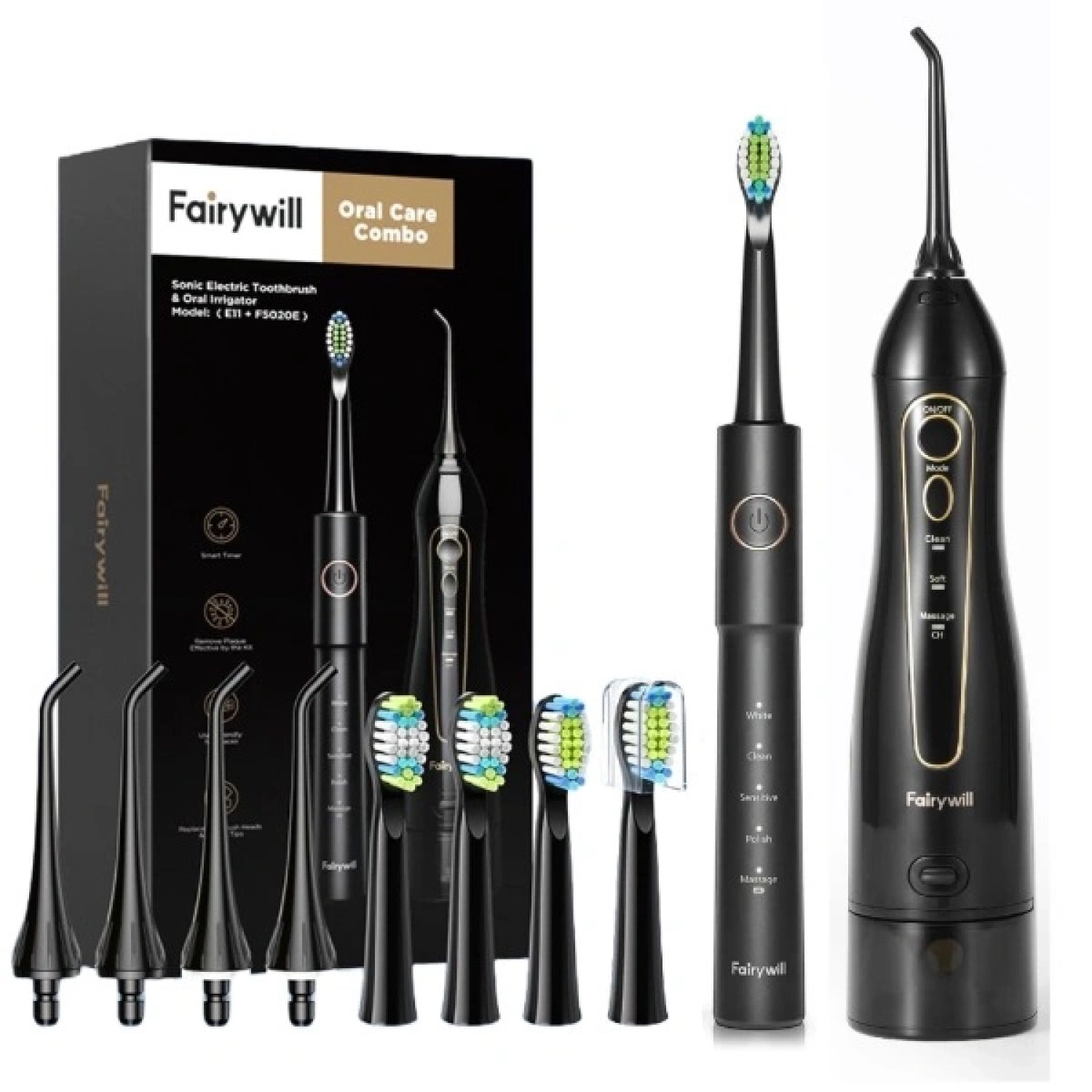 * 7 رؤوس (4 رؤوس نفاث كلاسيكية بلونين مختلفين، 1 رأس تقويم الأسنان، 1 لطب اللثة، 1 لللسان)