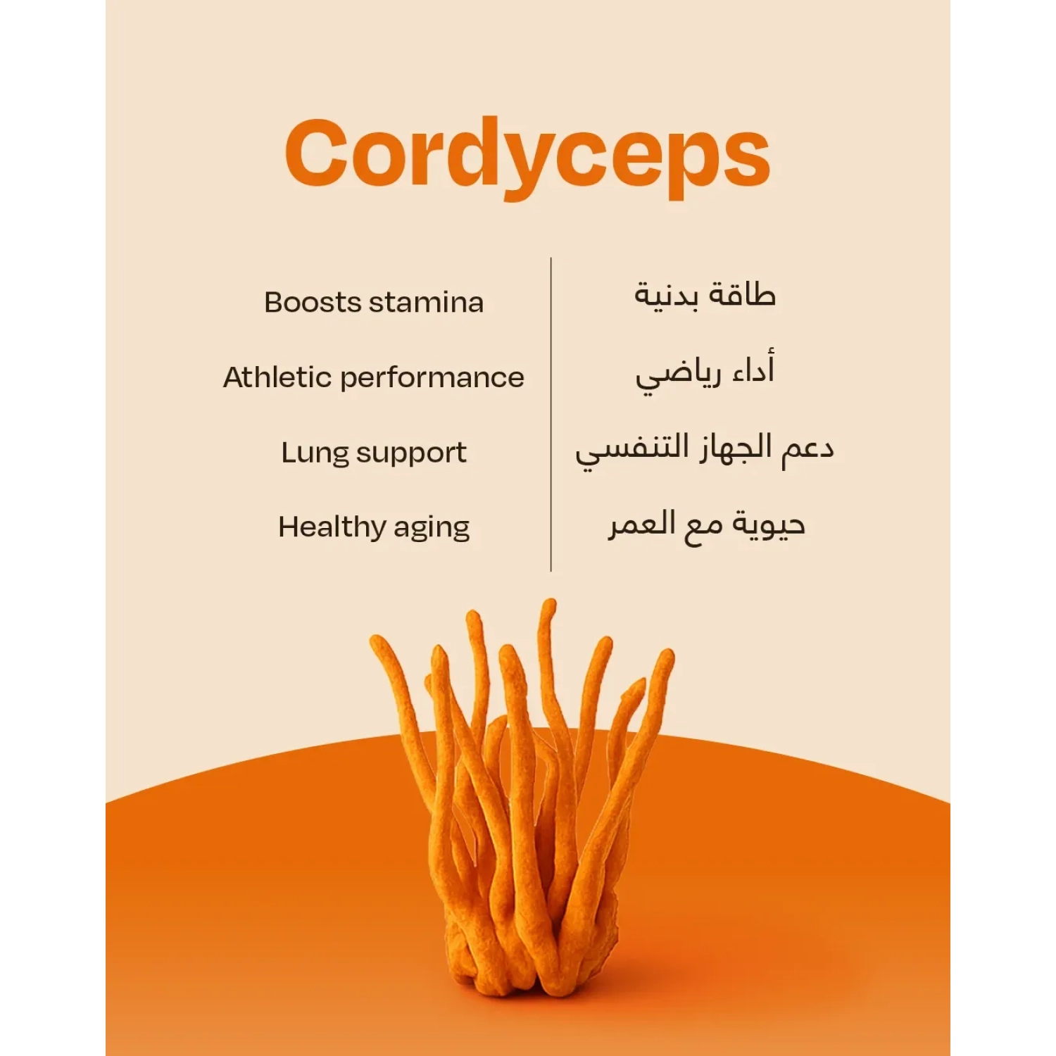 قوة الفطر: مدعمة بخمسة أنواع من الفطر لدعم صحتك من الداخل.