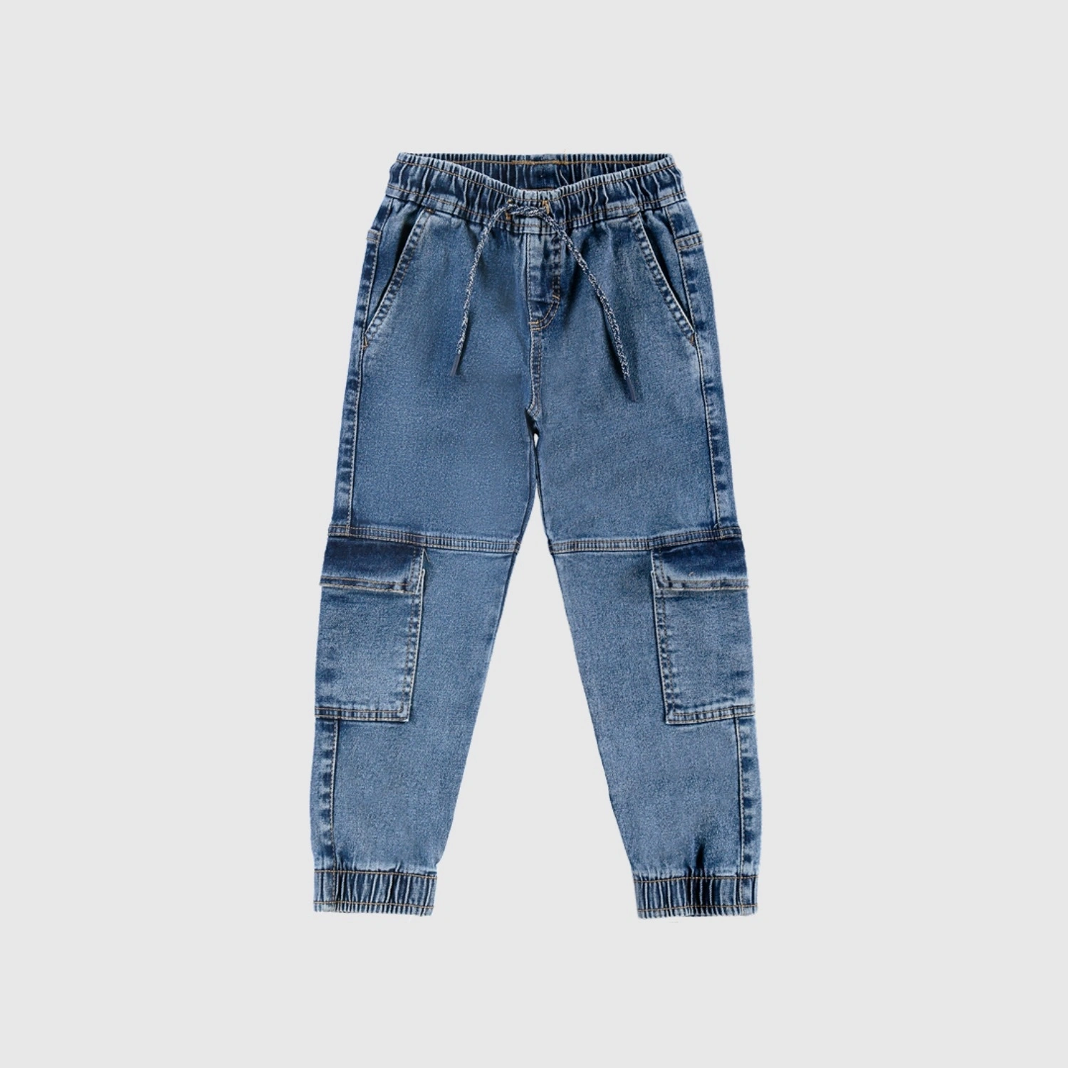 بنطلون جوجرز دنيم مطاطي للأولاد – ستايل كارجو مع خصر بحبل شد - أزرق