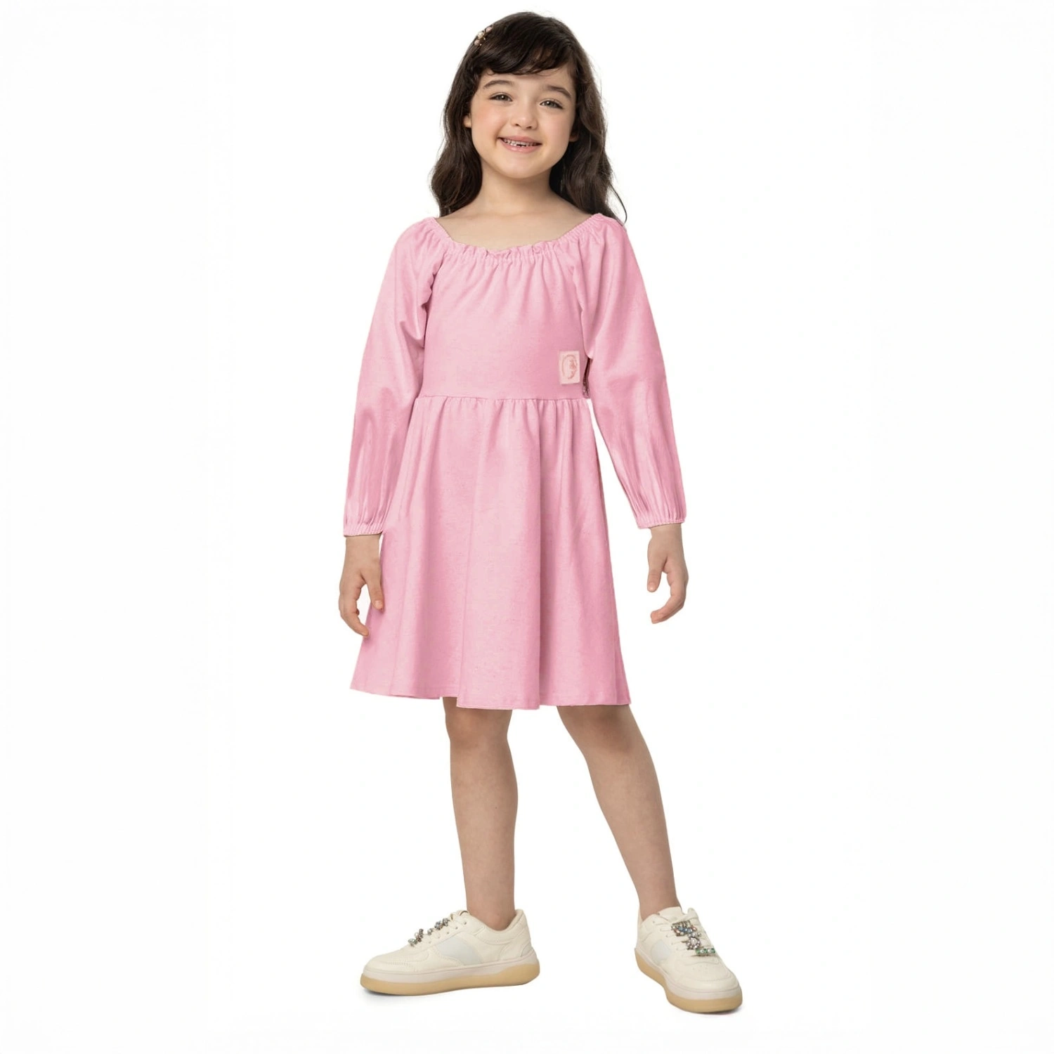 هذا الفستان الطويل الأكمام اللطيف للبنات مصنوع من قماش محبوك ناعم مطاطي بملمس يشبه الكتان، يتميز بياقة دائرية وقصة واسعة توفر راحة طوال اليوم، مع تفصيل أنيق لشريط تويل زخرفي. مثالي لأيام دافئة تجمع بين الراحة والجاذبية.