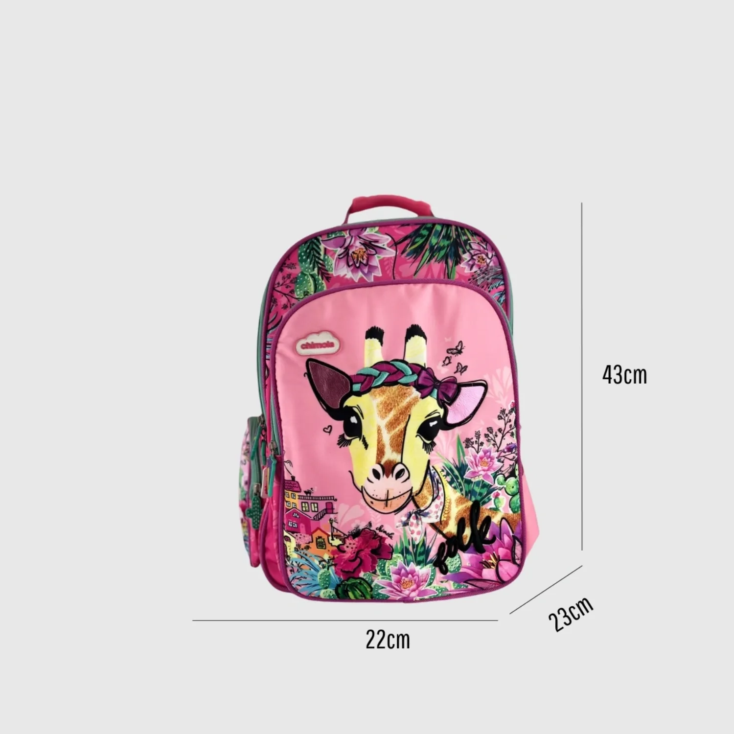 شيمولا هي علامة برازيلية مشهورة بموادها عالية الجودة وتصاميمها المرحة والفنية. تتميز حقيبة الظهر هذه بزرافة مبتهجة محاطة بحديقة زهور غنية، مما يضفي لمسة من اللون والبهجة على مغامرات الحياة اليومية. مصنوعة من قماش متين بلمسة ناعمة، وتوفر مساحة داخلية واسعة، وجيب جانبي خارجي للزجاجات، وظهر مبطن مريح. الأبعاد: 43x22x23 سم، مثالية للمدرسة أو الرحلات النهارية. المنتج متوفر بتصاميم حيوانات أخرى من شيمولا.