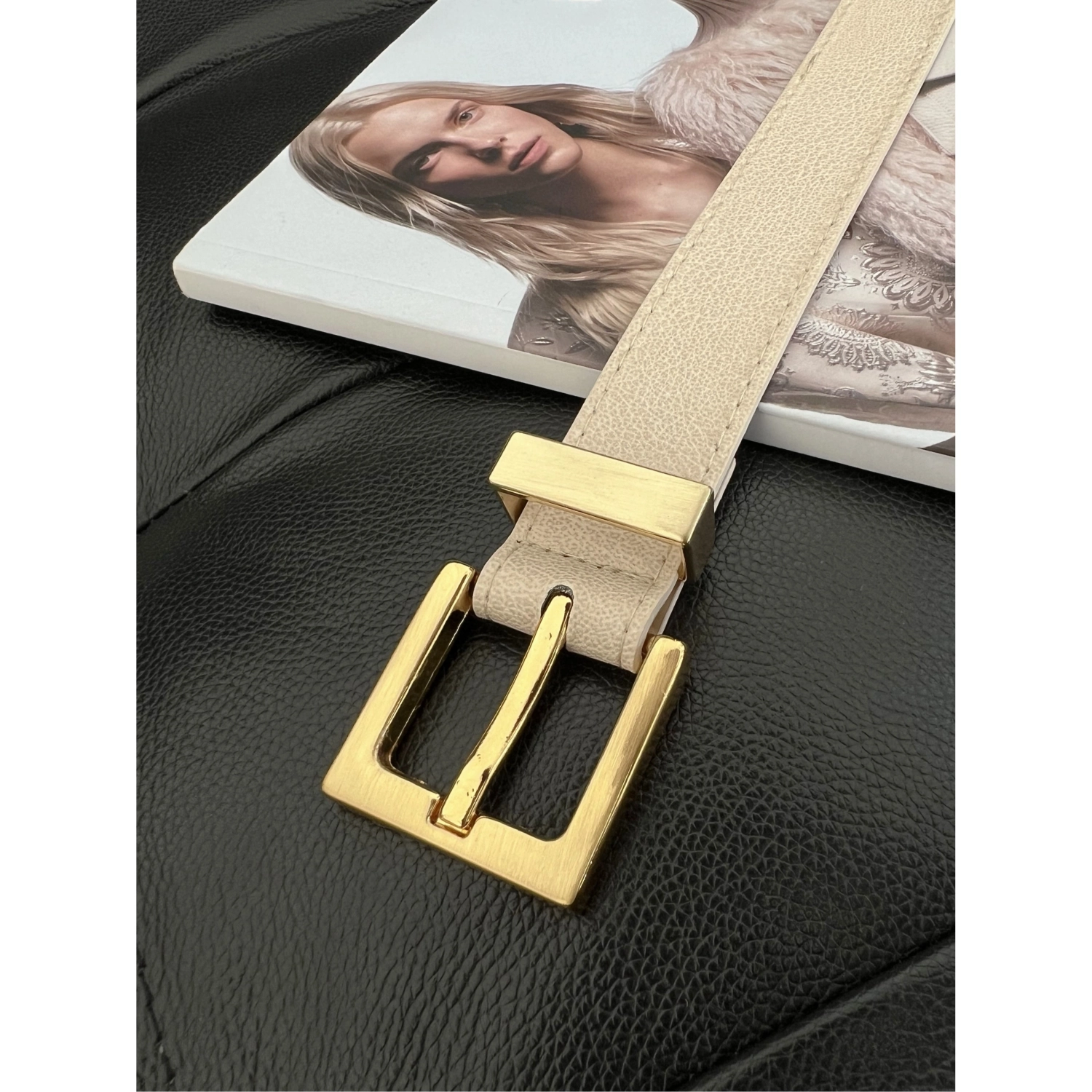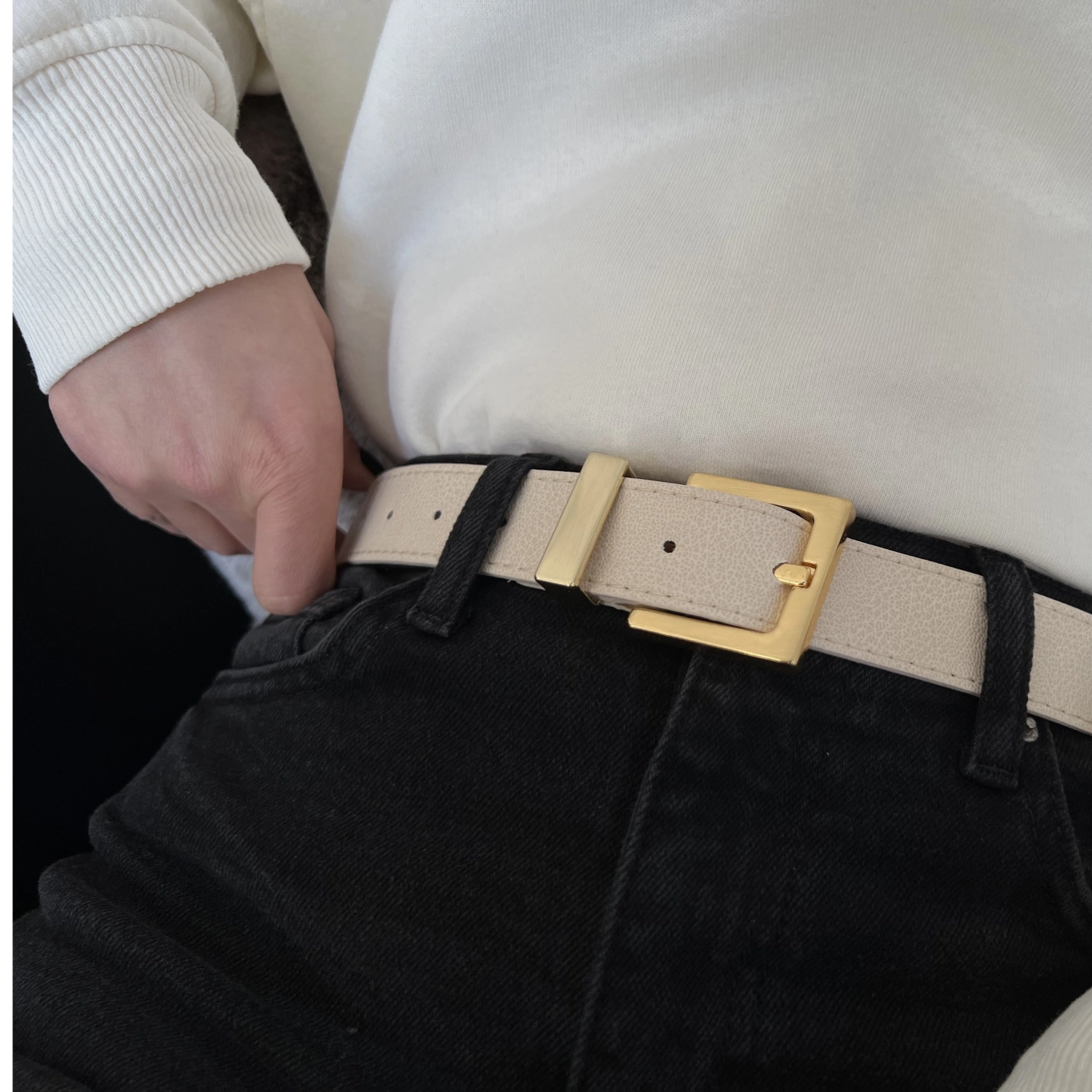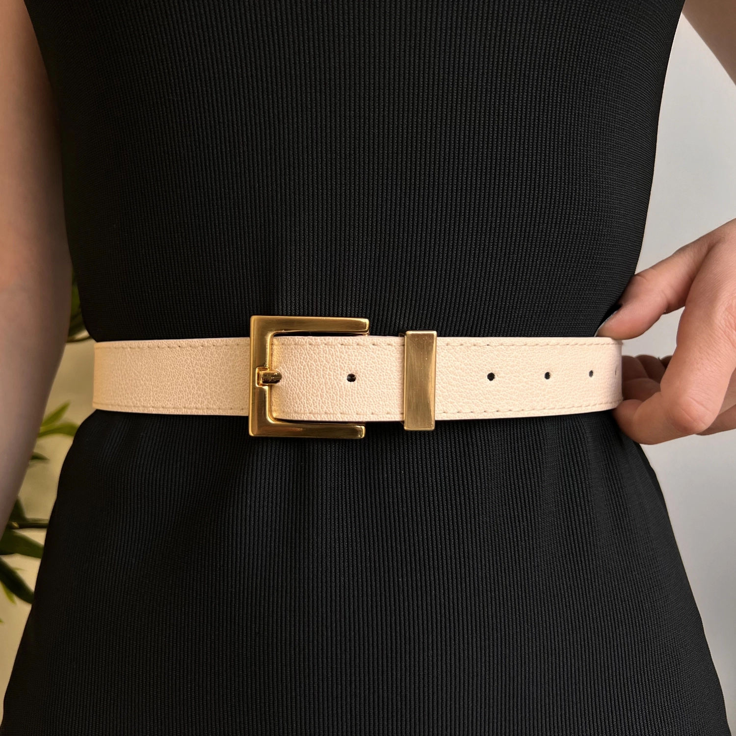 حزام نسائي من الجلد الصناعي بإبزيم مربع طول المنتج: 105 سم عرض المنتج: 3 سم