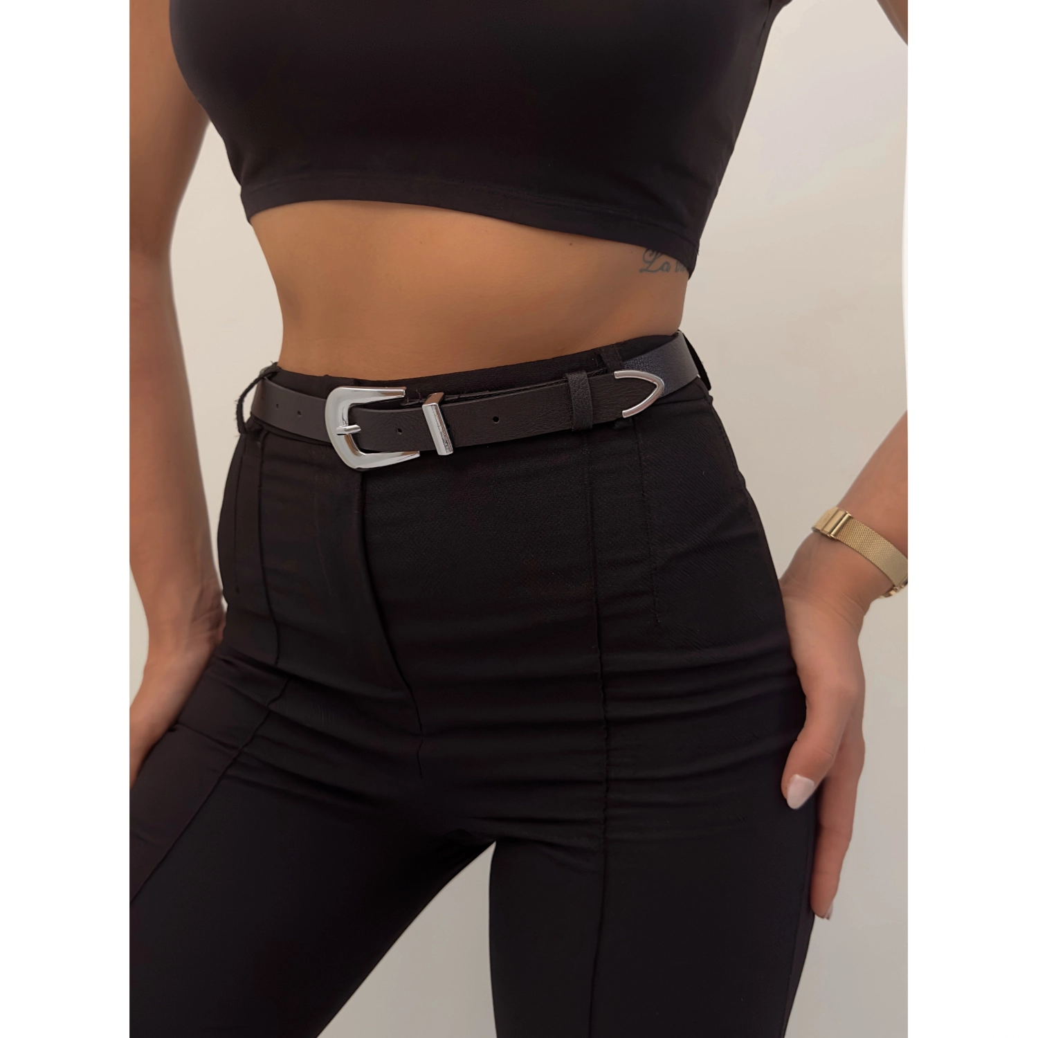 حزام نسائي من الجلد الصناعي بنهاية بإبزيم مناسب للبدلات الطول: 105 سم (10 ثقوب) العرض: 2.5 سم