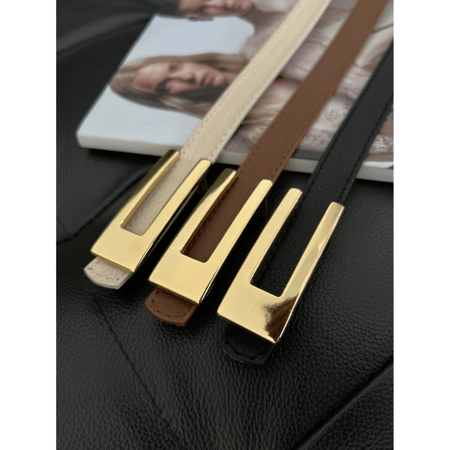 حزام نسائي رفيع من الجلد الصناعي بإبزيم بتصميم مميز طول المنتج: 105 سم عرض المنتج: 2 سم