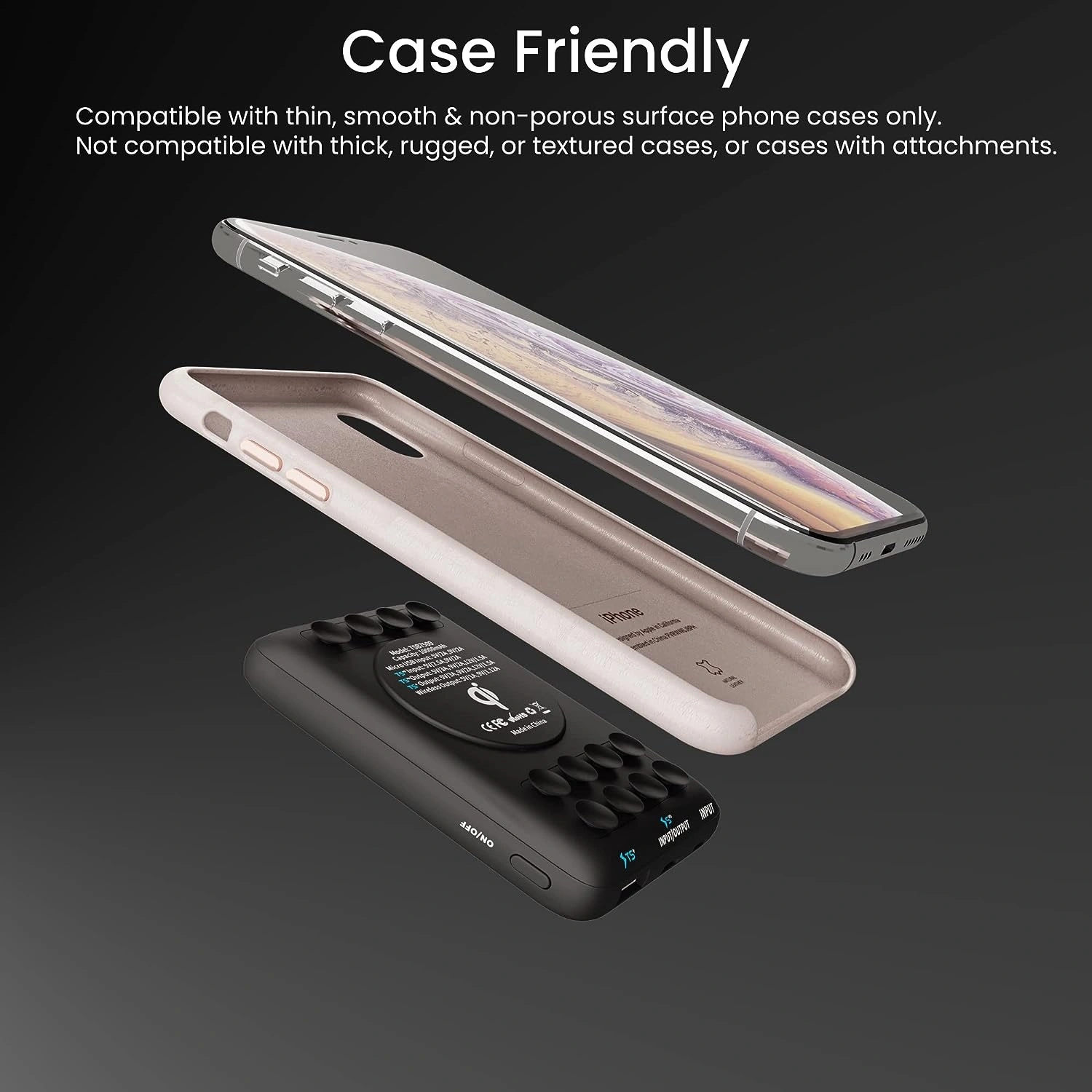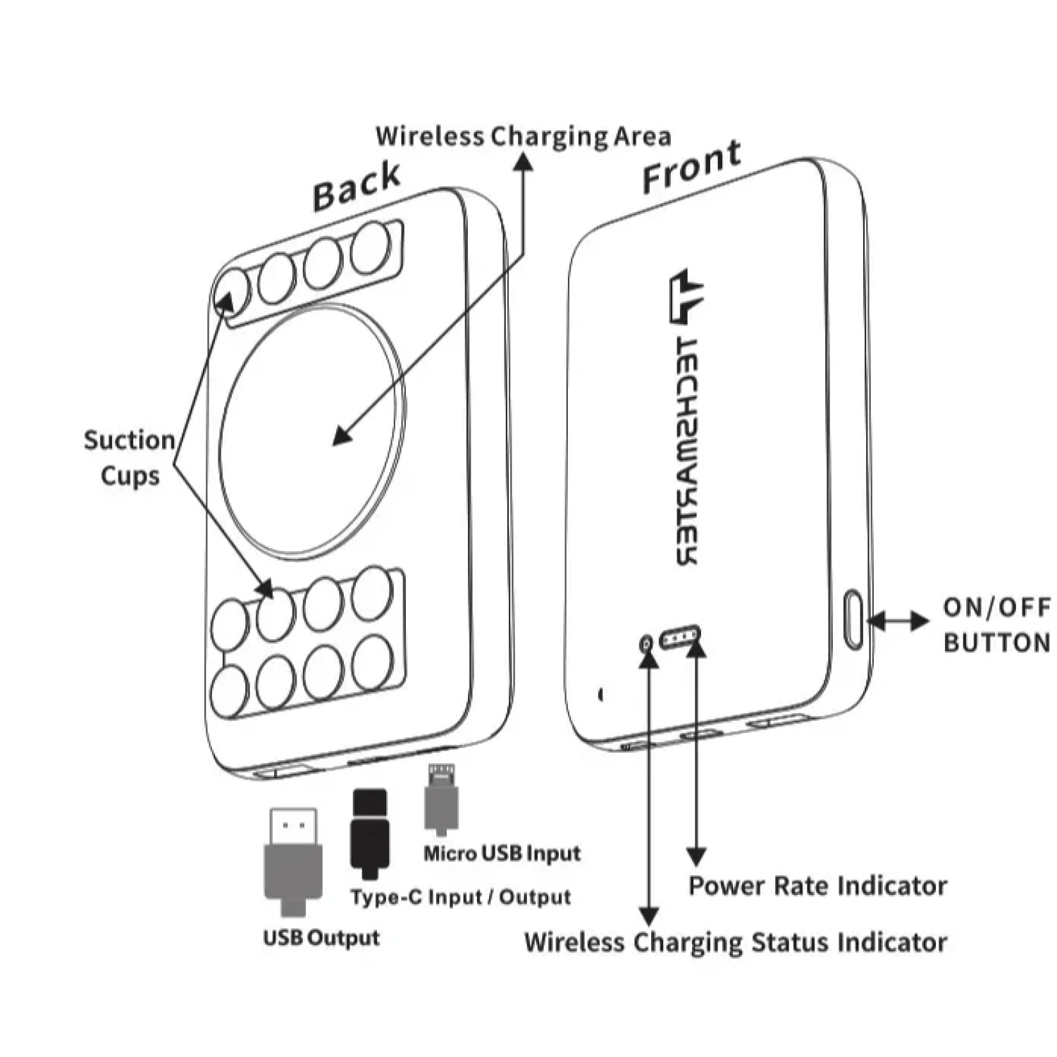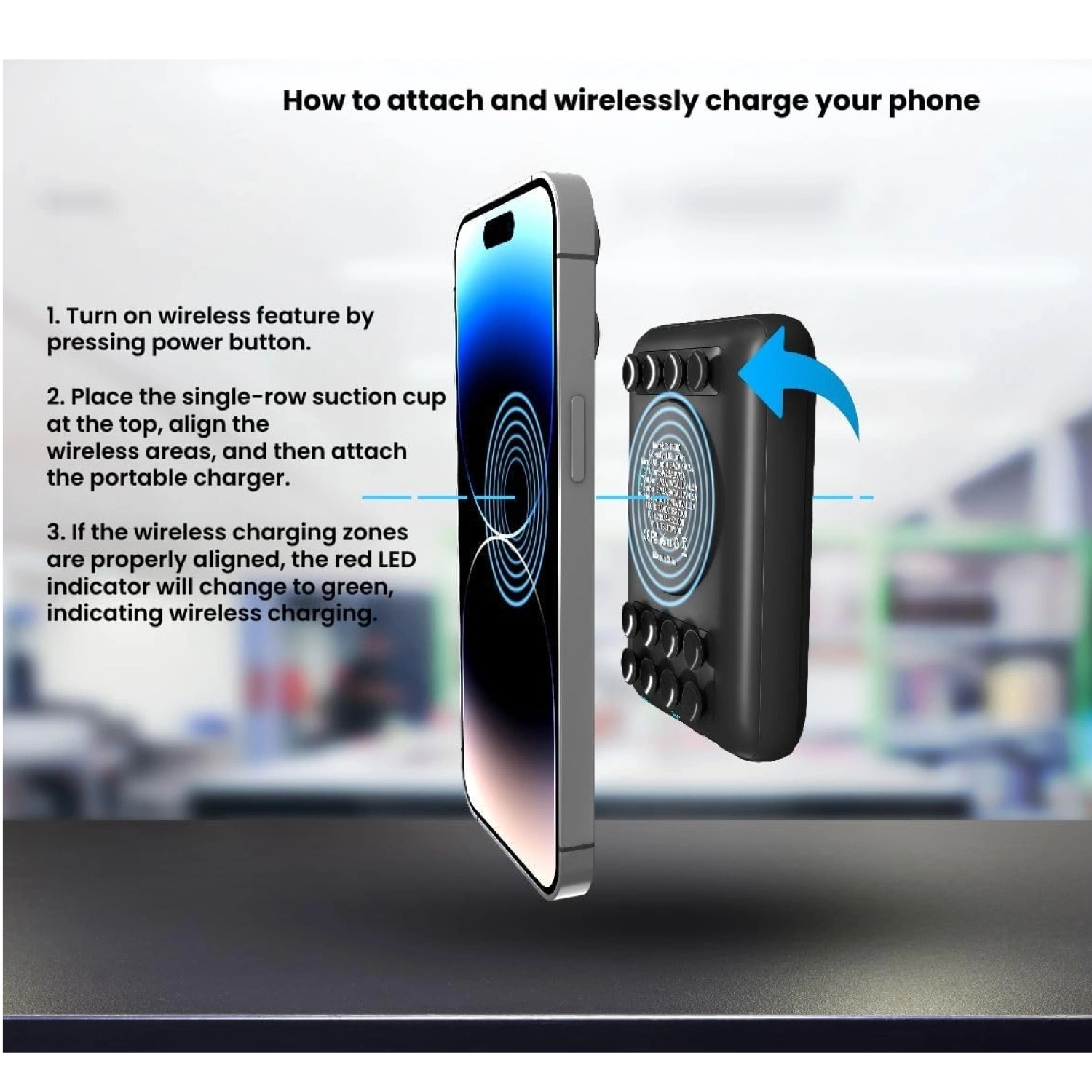 تي بار باور بانك 8000 مللي أمبير لاسلكي مع شفط، أسود