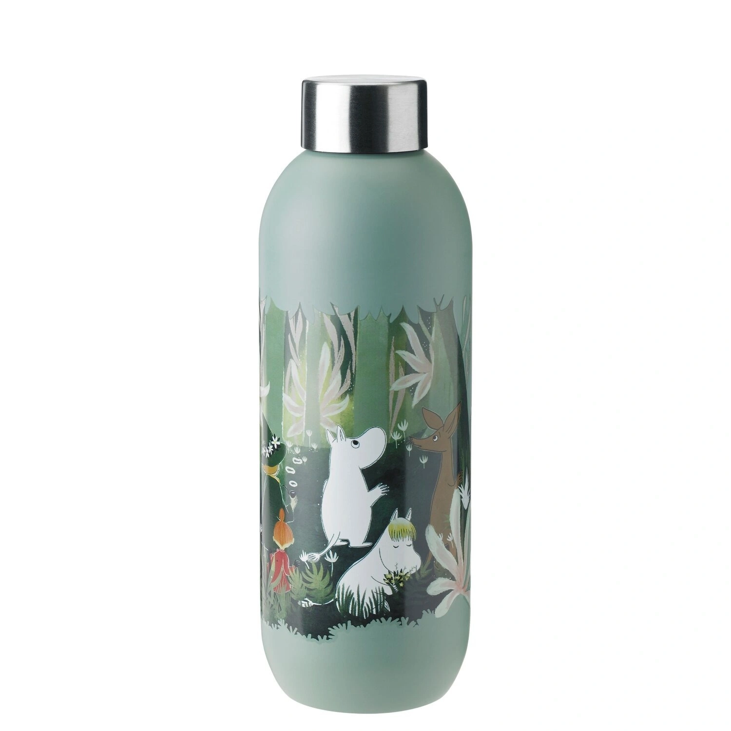 قارورة شرب "كيب كول" بسعة 0.75 لتر بلون أخضر داكن وبنقوش مومين المرحة. مصنوعة من مواد متينة، تحافظ على برودة المشروبات لساعات، ومثالية للمدرسة، الأنشطة الخارجية، أو الاستخدام اليومي.