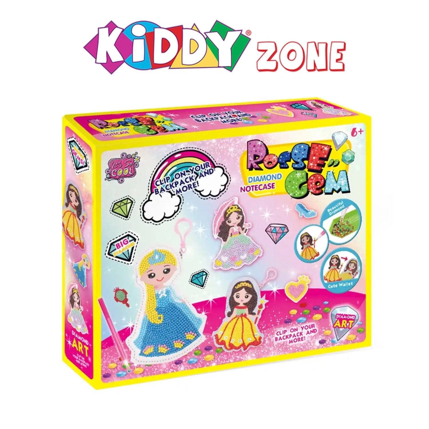مجموعة ممتعة لصق DIY تشمل محفظة بتصميم أميرة باللون الأرجواني، يمكن للأطفال تزيينها بملصقات ألماسية أو عادية، لتعزيز الإبداع والمهارات الحركية الدقيقة. مناسبة للأطفال من عمر 6 سنوات فما فوق.