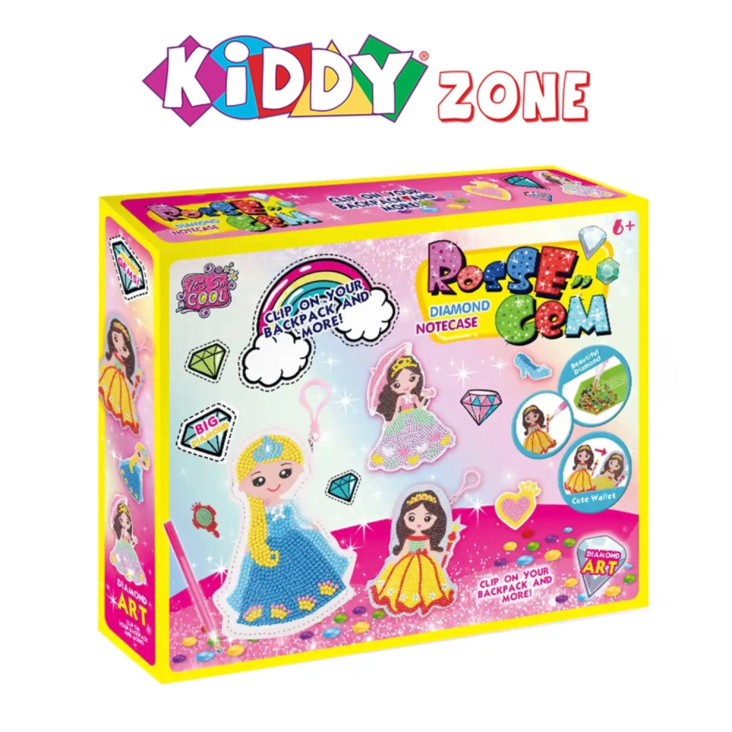 مجموعة ممتعة لصق DIY تشمل محفظة بتصميم أميرة باللون الأصفر، يمكن للأطفال تزيينها بملصقات ألماسية أو عادية، لتعزيز الإبداع والمهارات الحركية الدقيقة. مناسبة للأطفال من عمر 6 سنوات فما فوق.