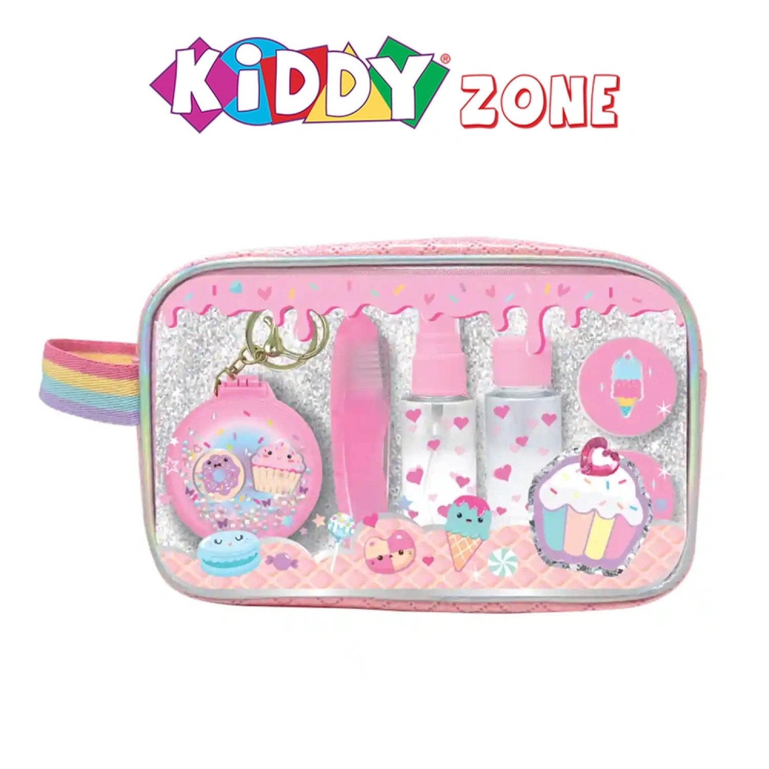مجموعة تجميل صغيرة وأنيقة تشمل مستلزمات المكياج الأساسية والإكسسوارات، مثالية للاستخدام أثناء السفر. مناسبة للأطفال من عمر 8 سنوات فما فوق.