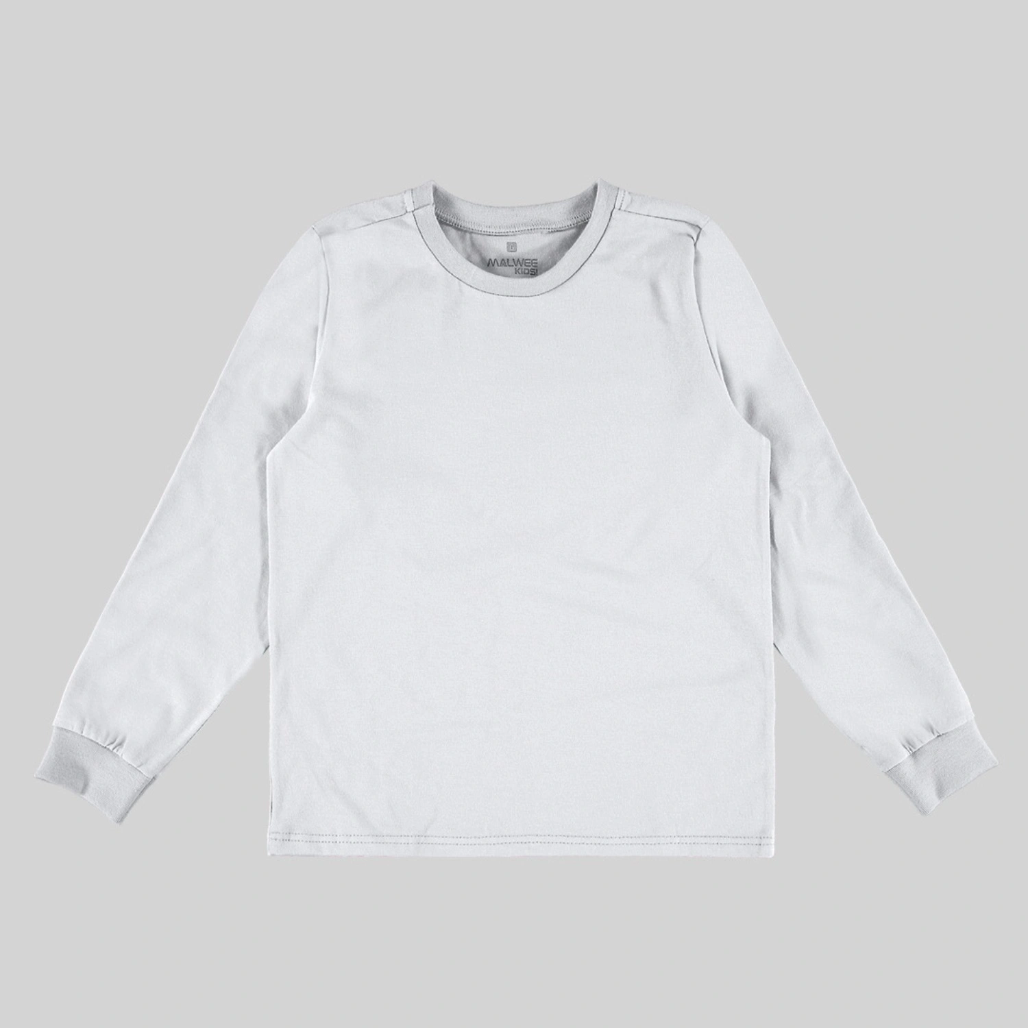 تيشيرت أطفال طويل الأكمام للجنسين – بياقة دائرية – أبيض