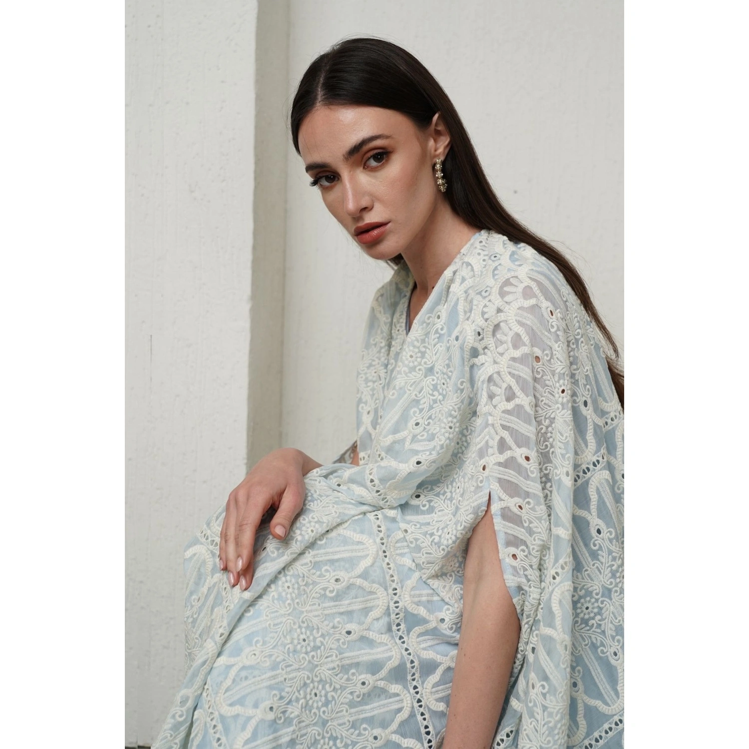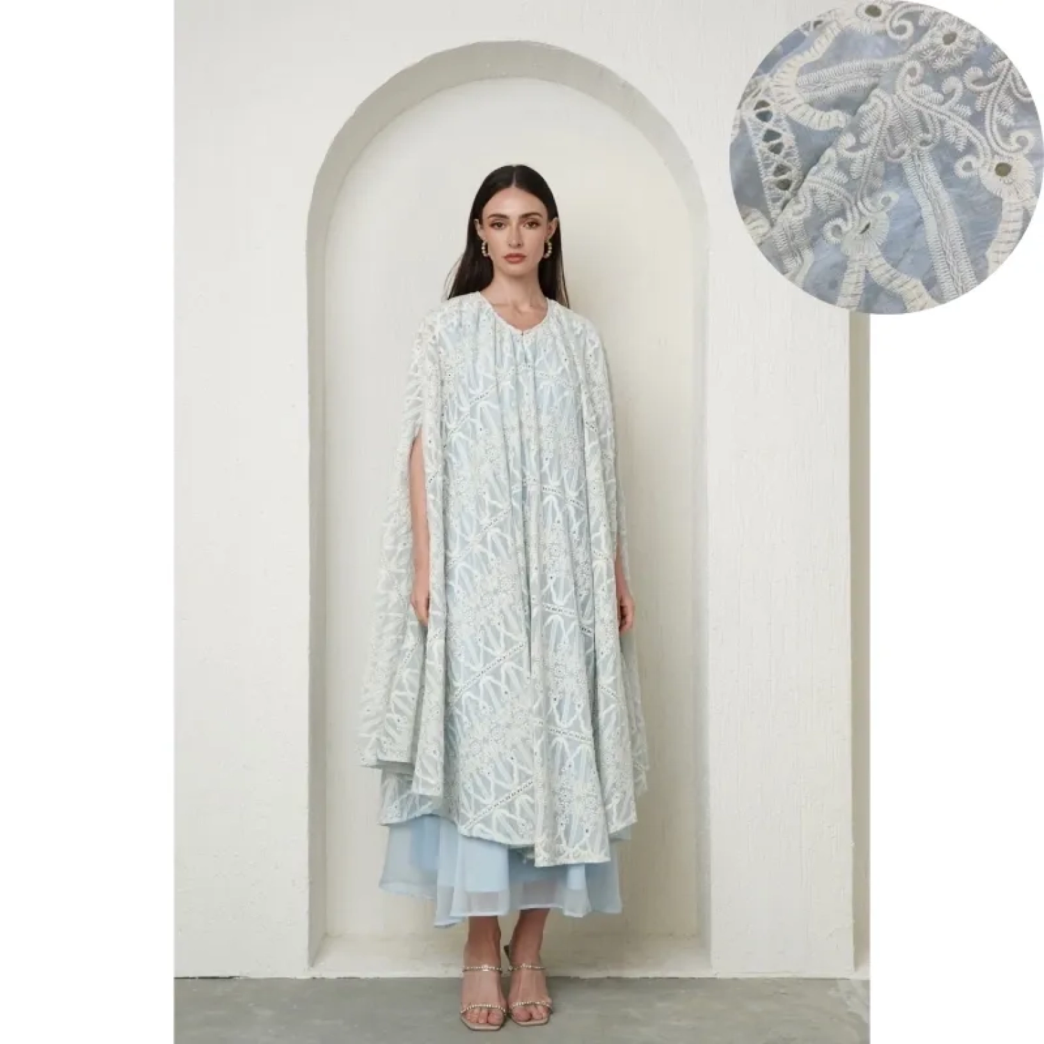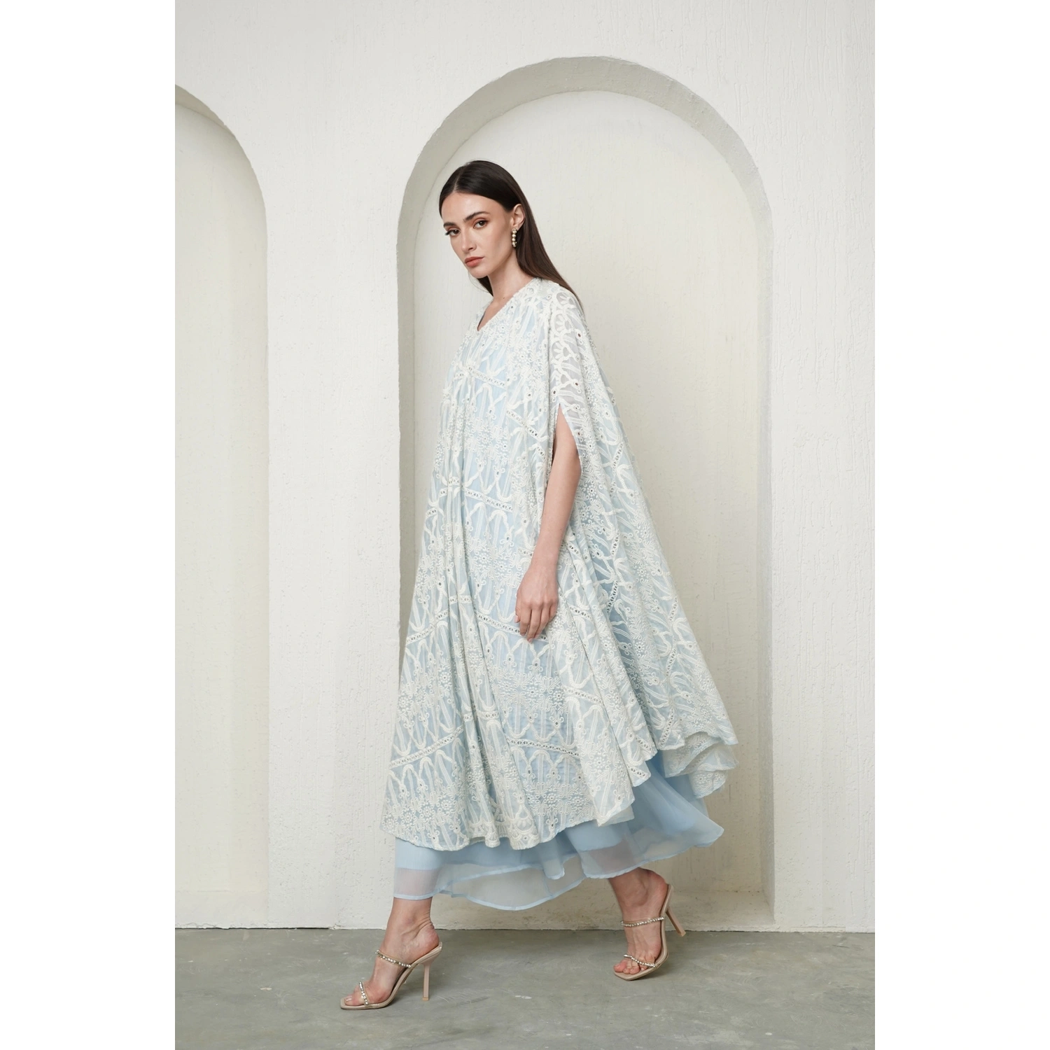 فستان مطرز بأكمام كاب- أزرق فاتح
