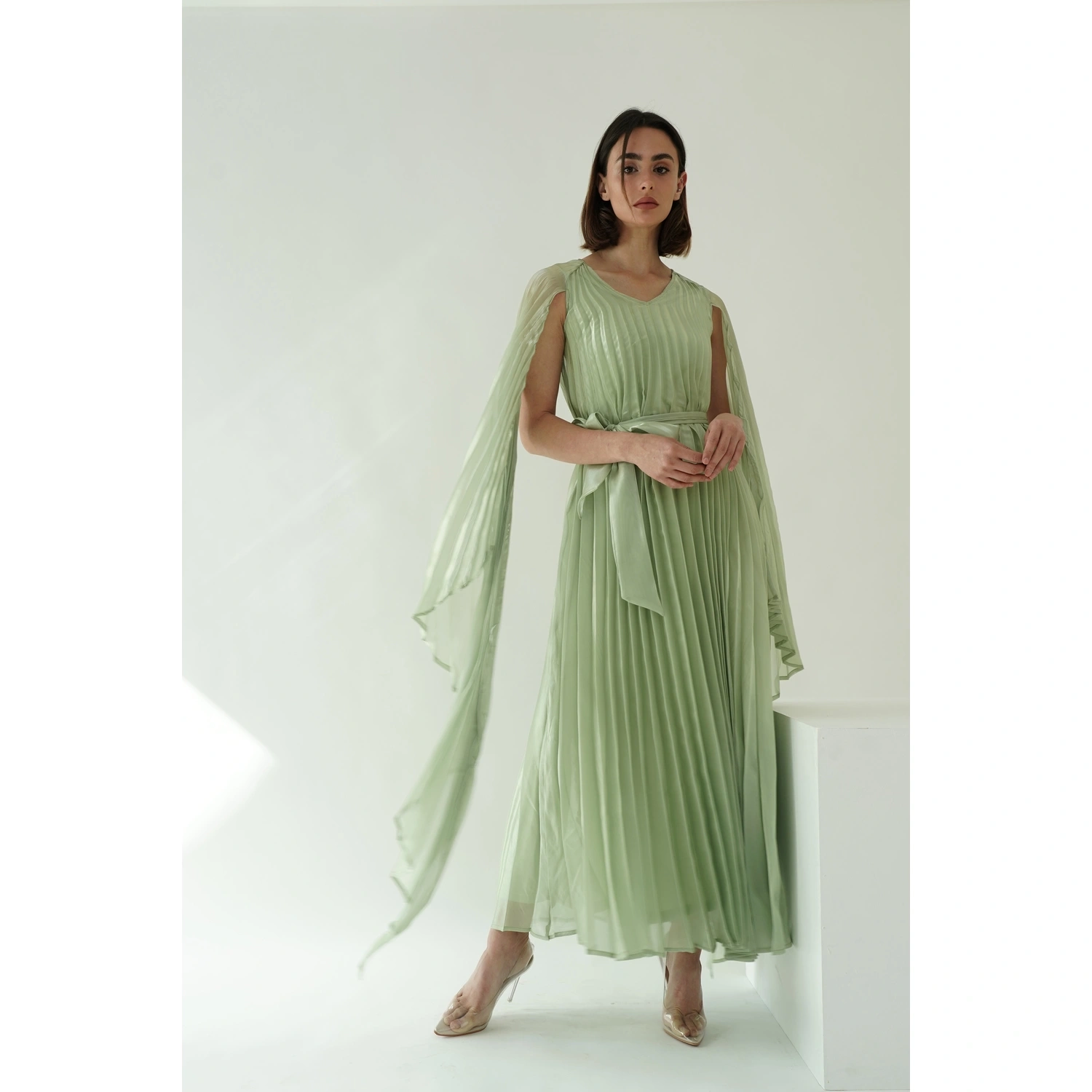 فستان بأكمام كاب - أخضر
