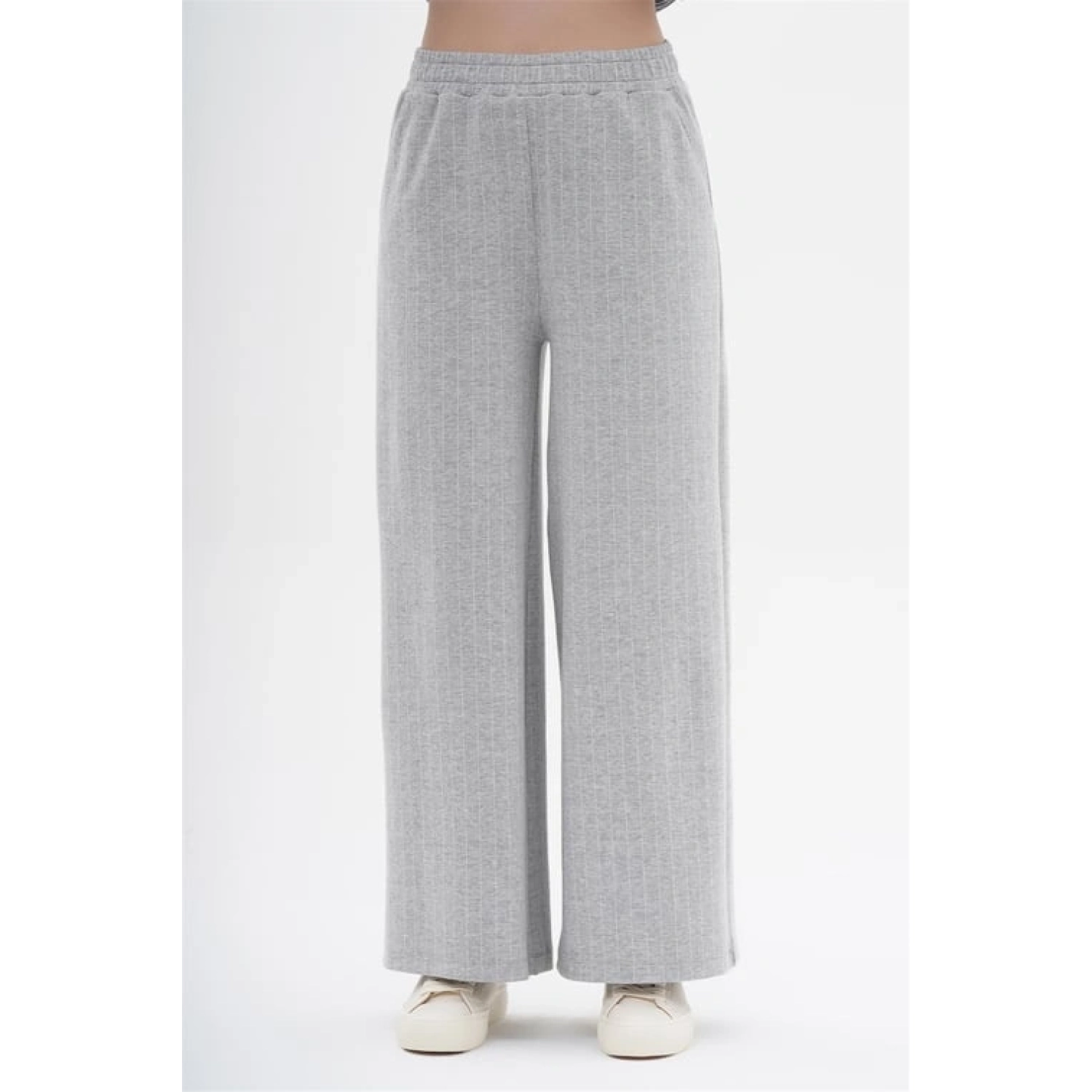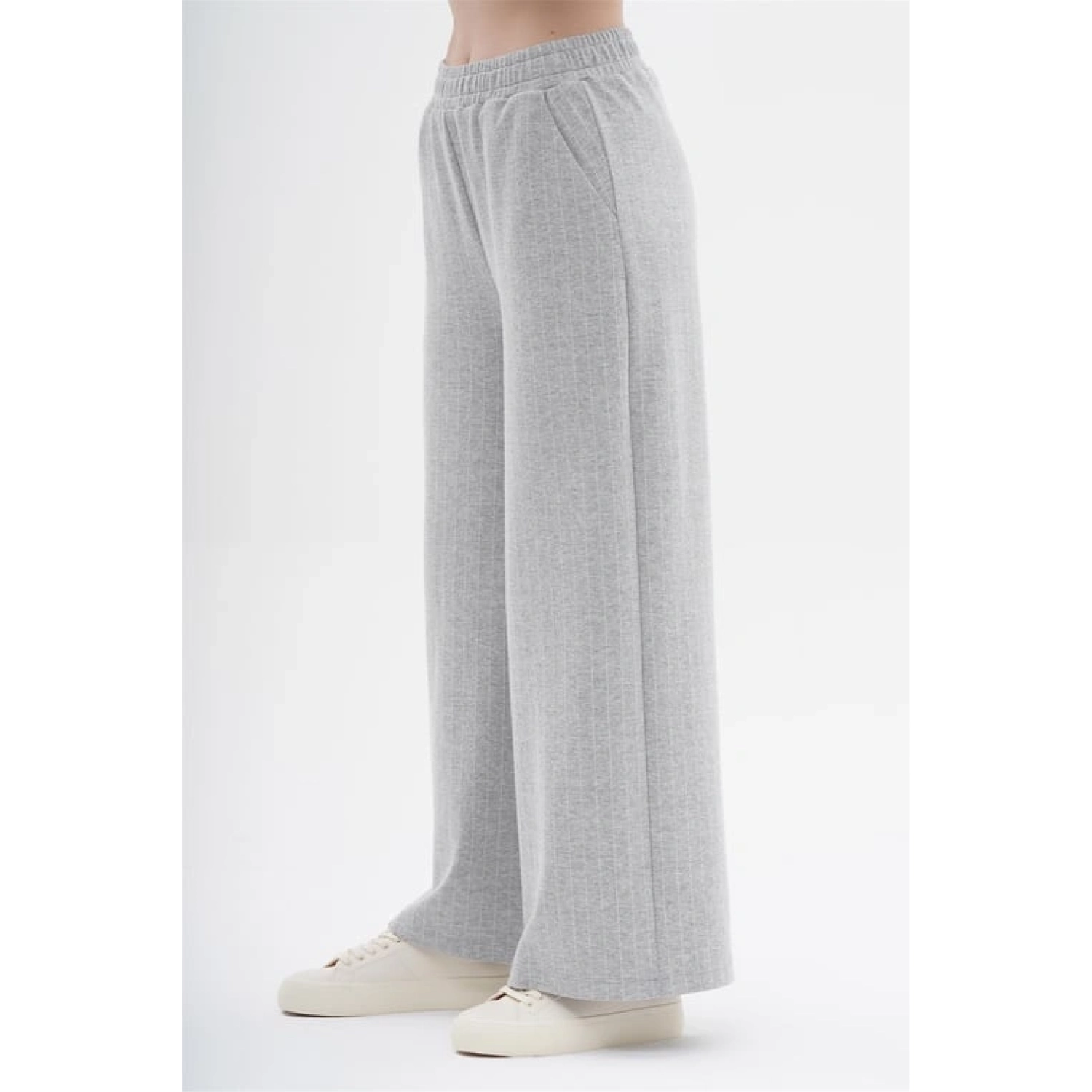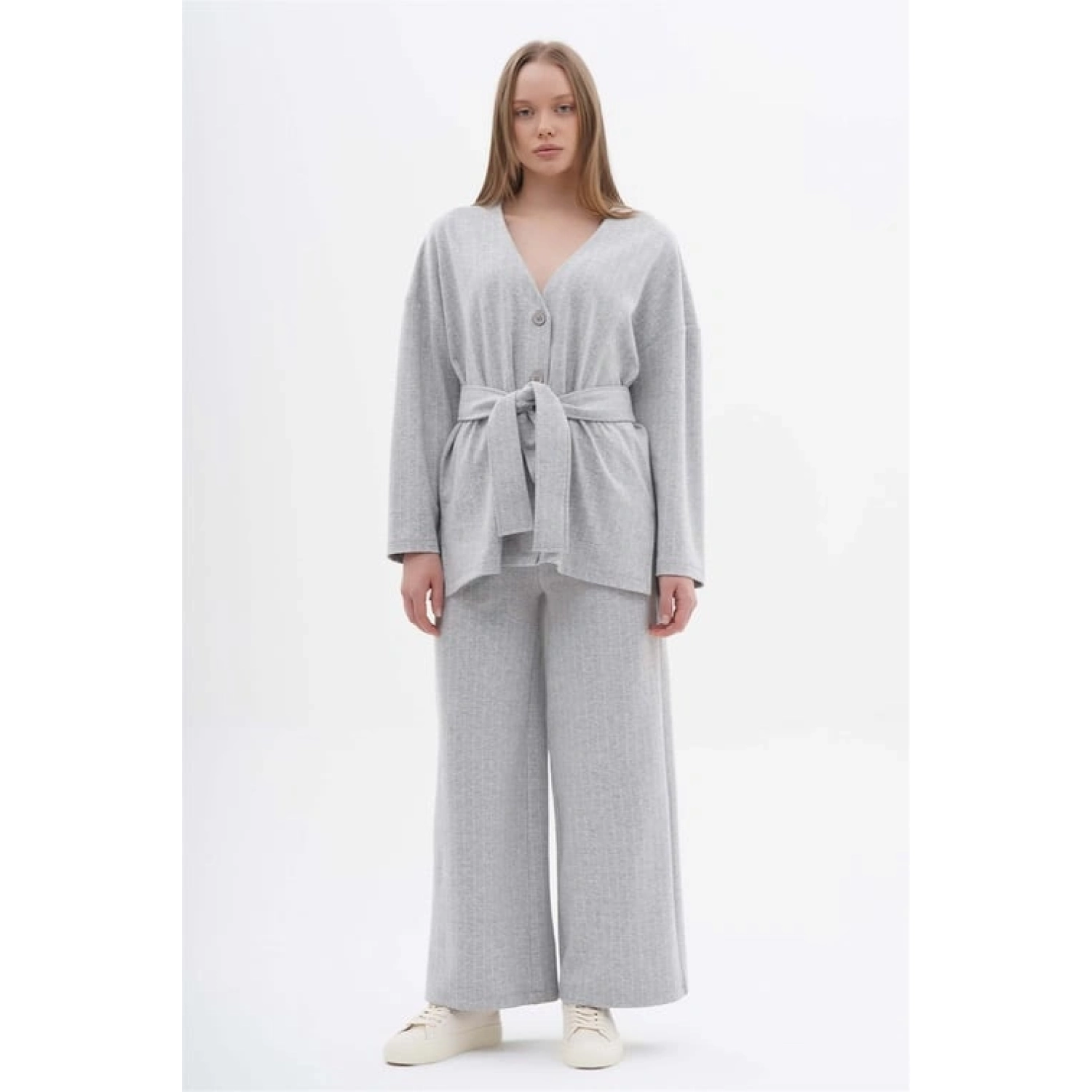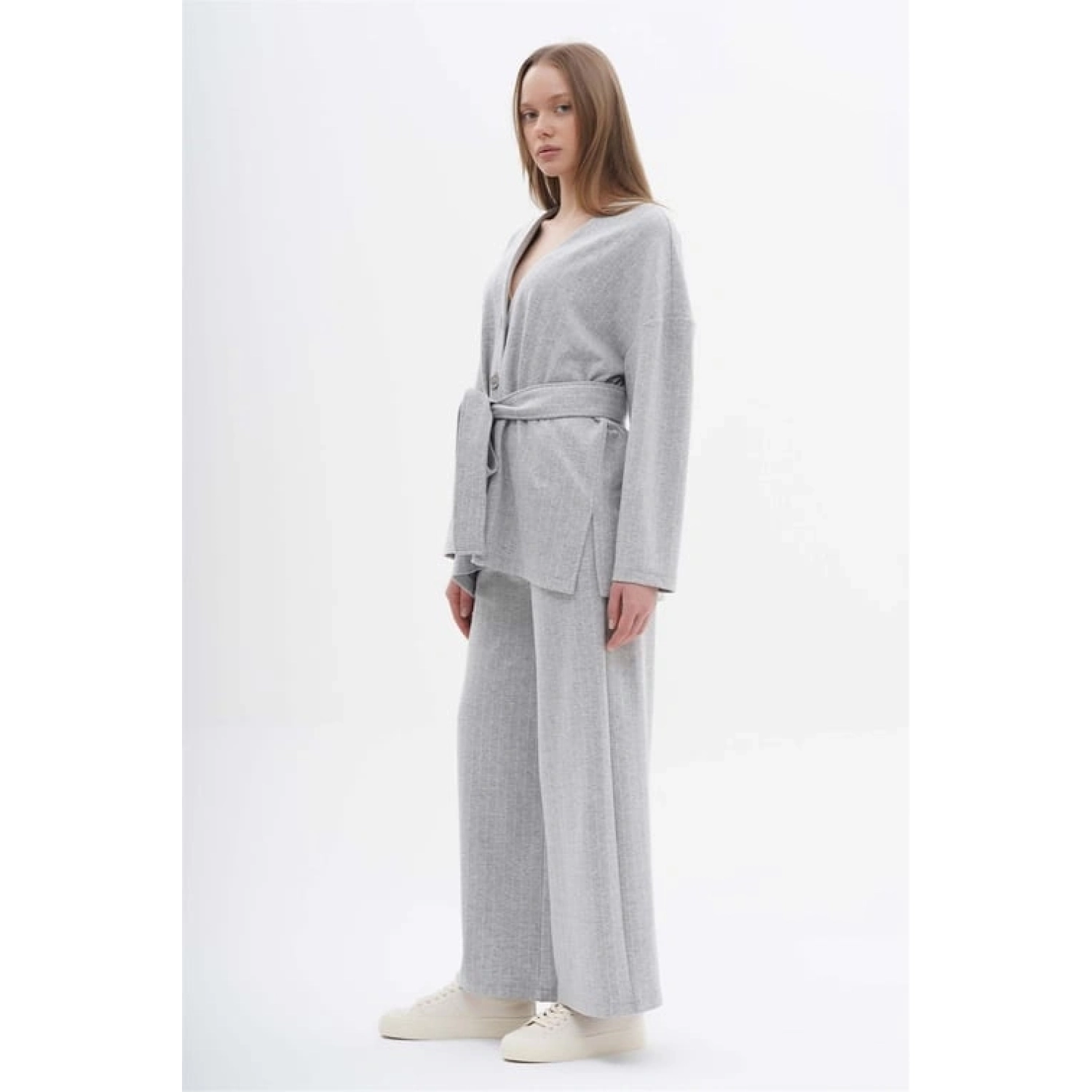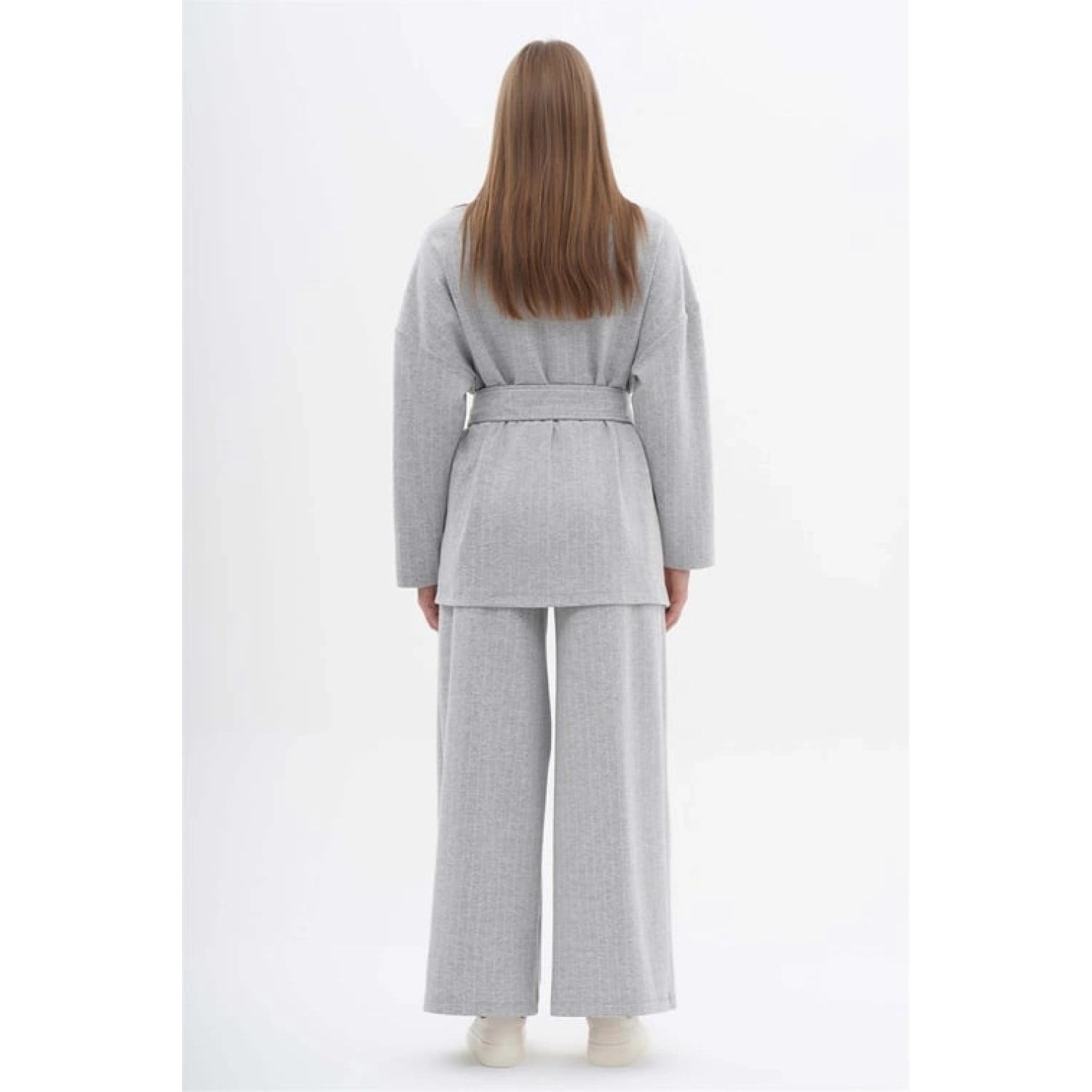 بليزر بأكمام طويلة مخطط بدون ياقة مع بنطلون باللون الرمادي من "بوليستر - 60%، فيسكوز - 35%، إيلاستين - 5%"