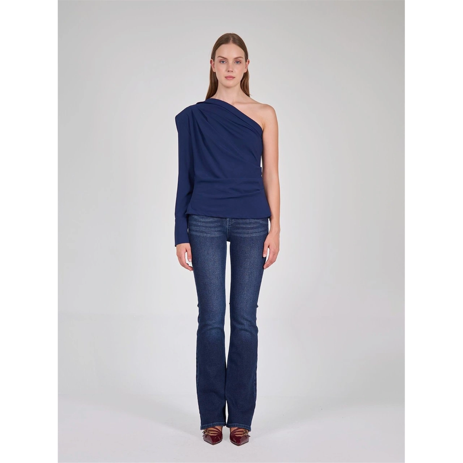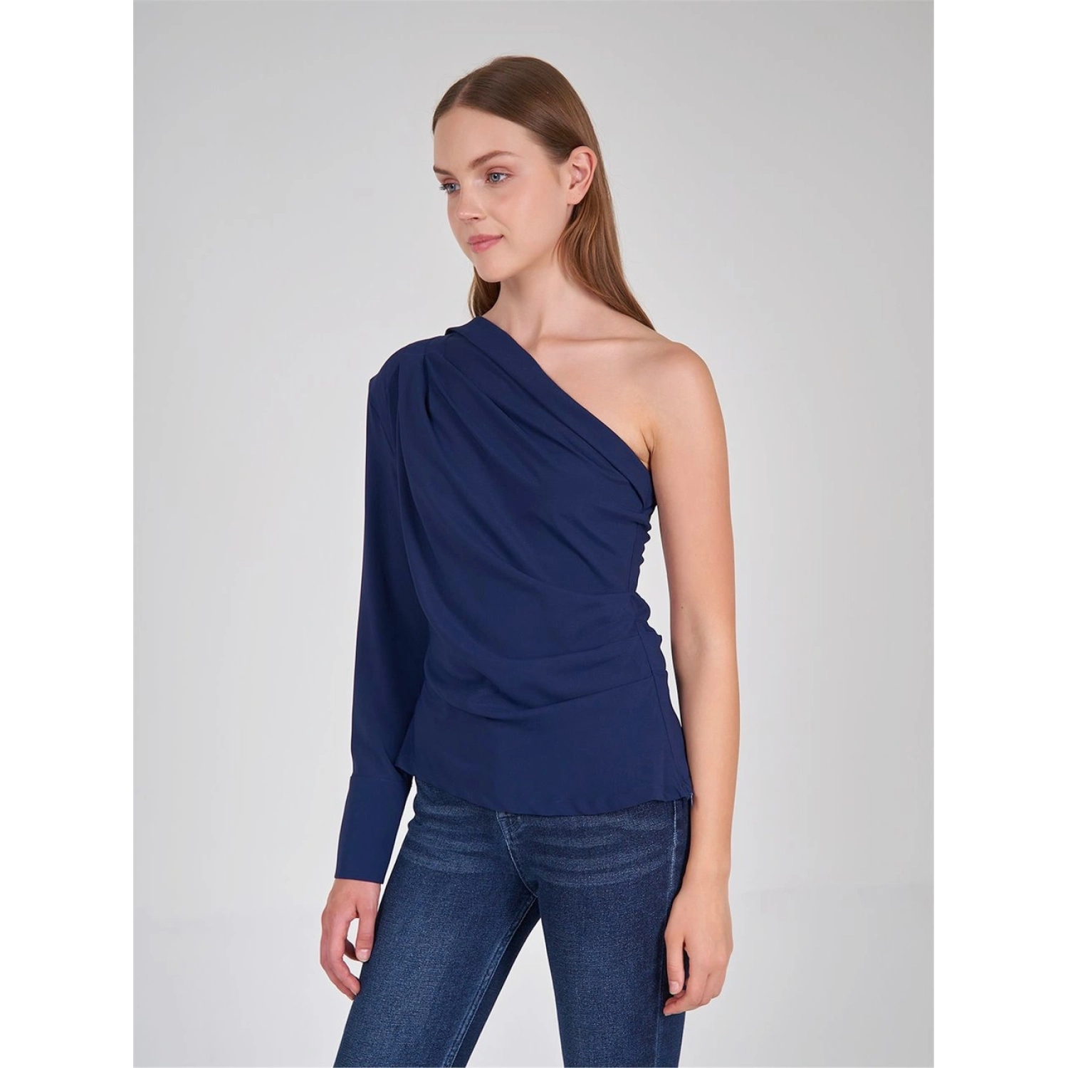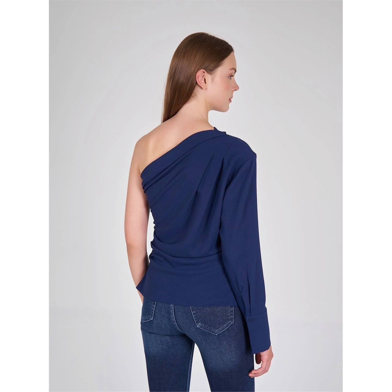 بلوزة بكتف واحد أزرق من بوليستر 100%