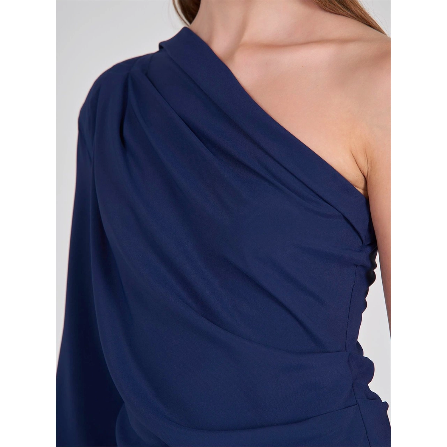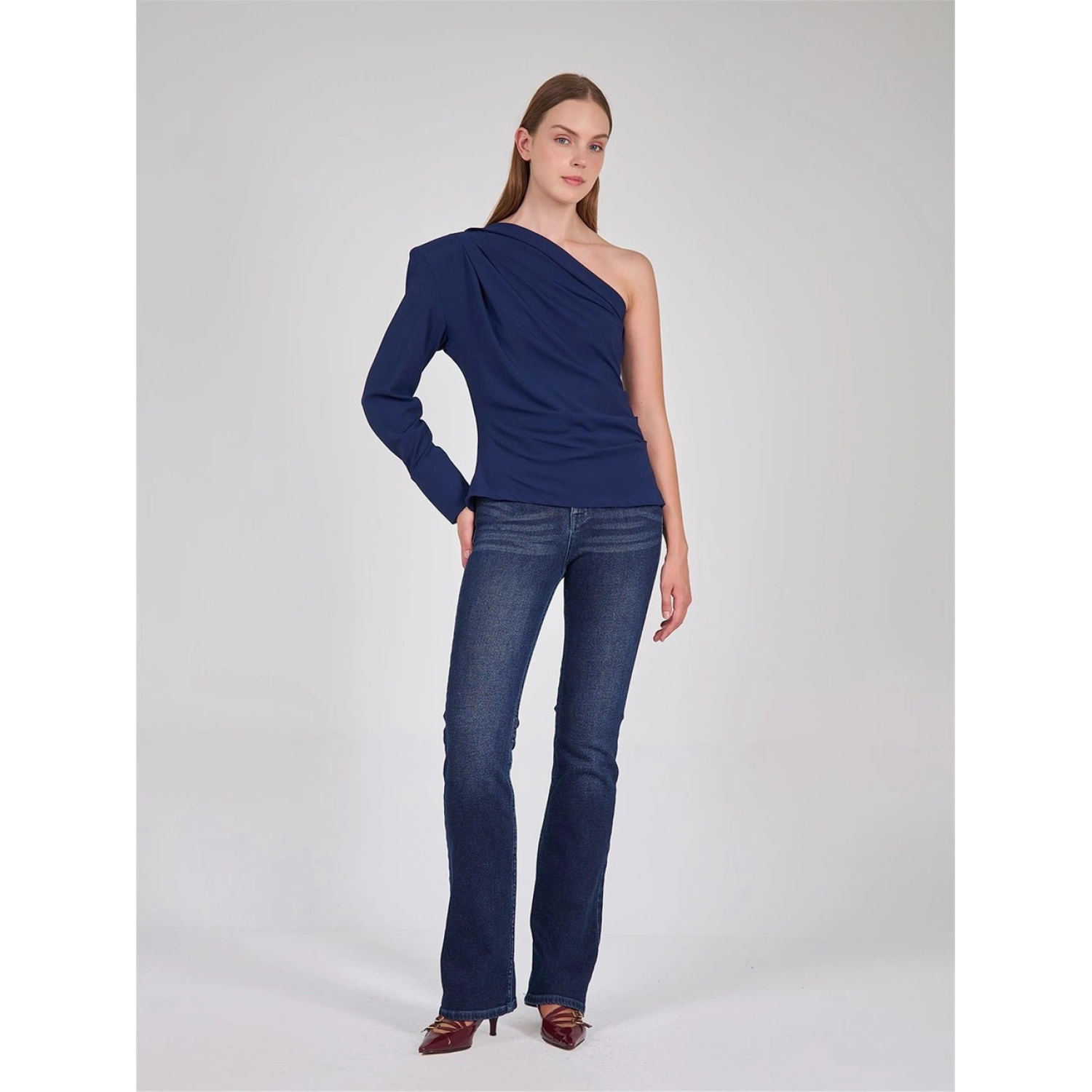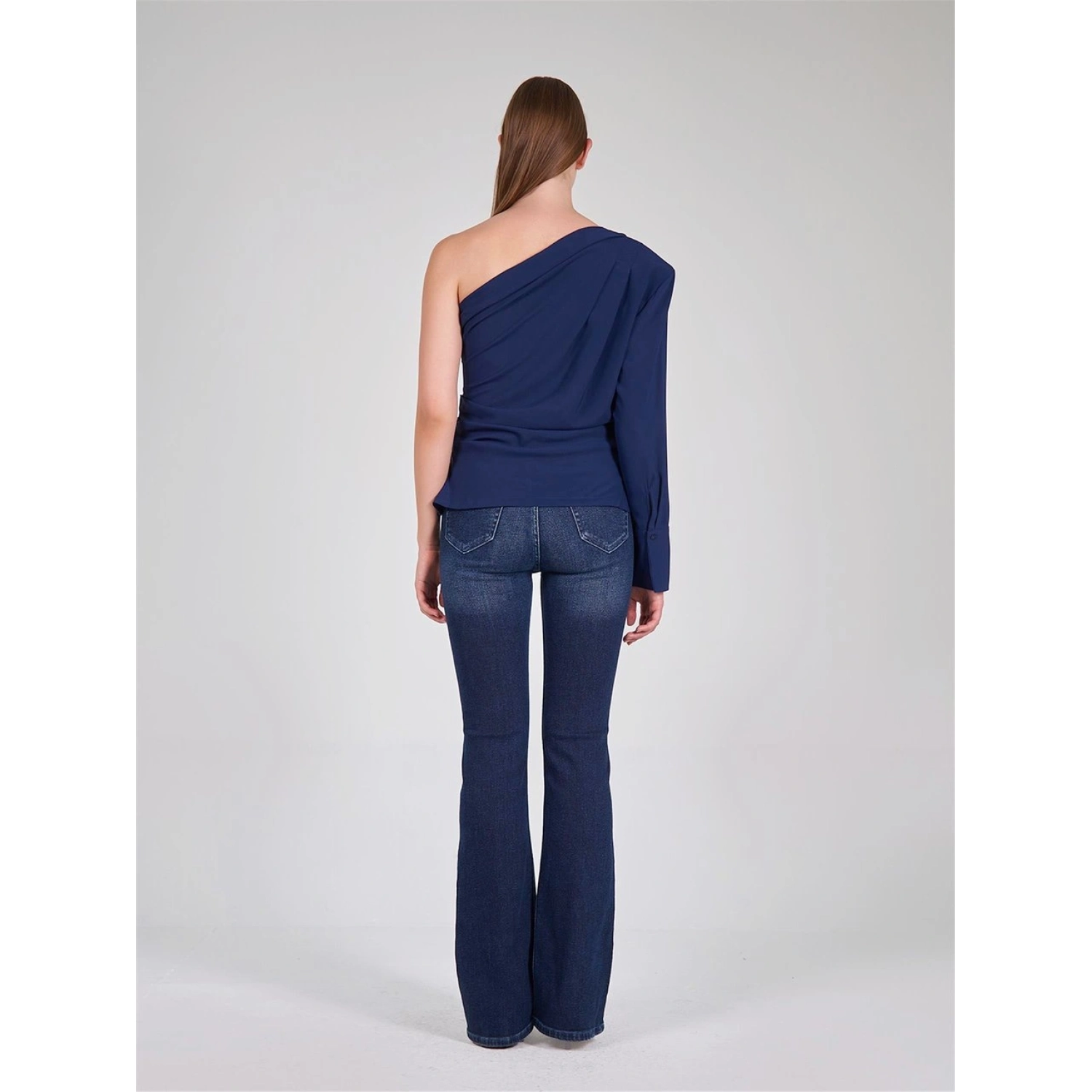 بلوزة بكتف واحد أزرق من بوليستر 100%