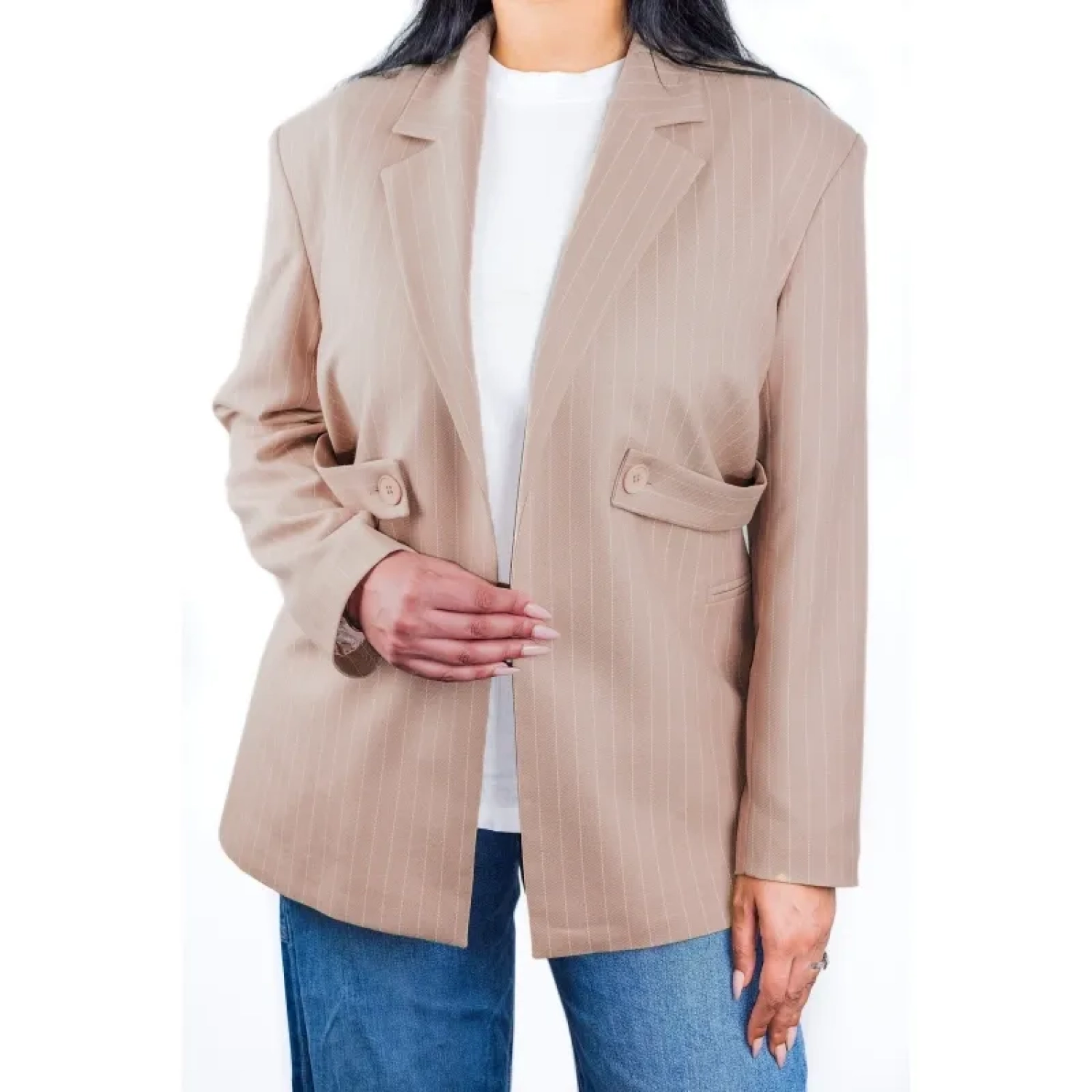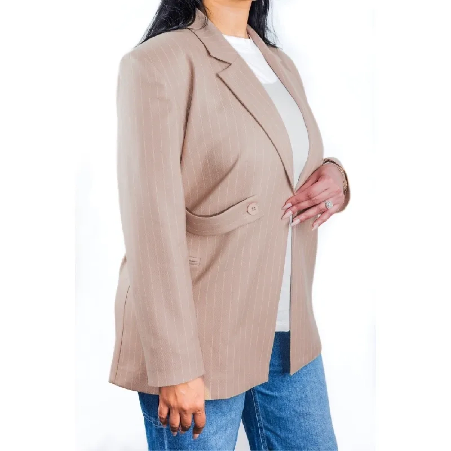 بليزر مخطط مع حزام لتحديد الخصرمن بوليستر - 64%، فيسكوز - 31%، إيلاستان - 5%