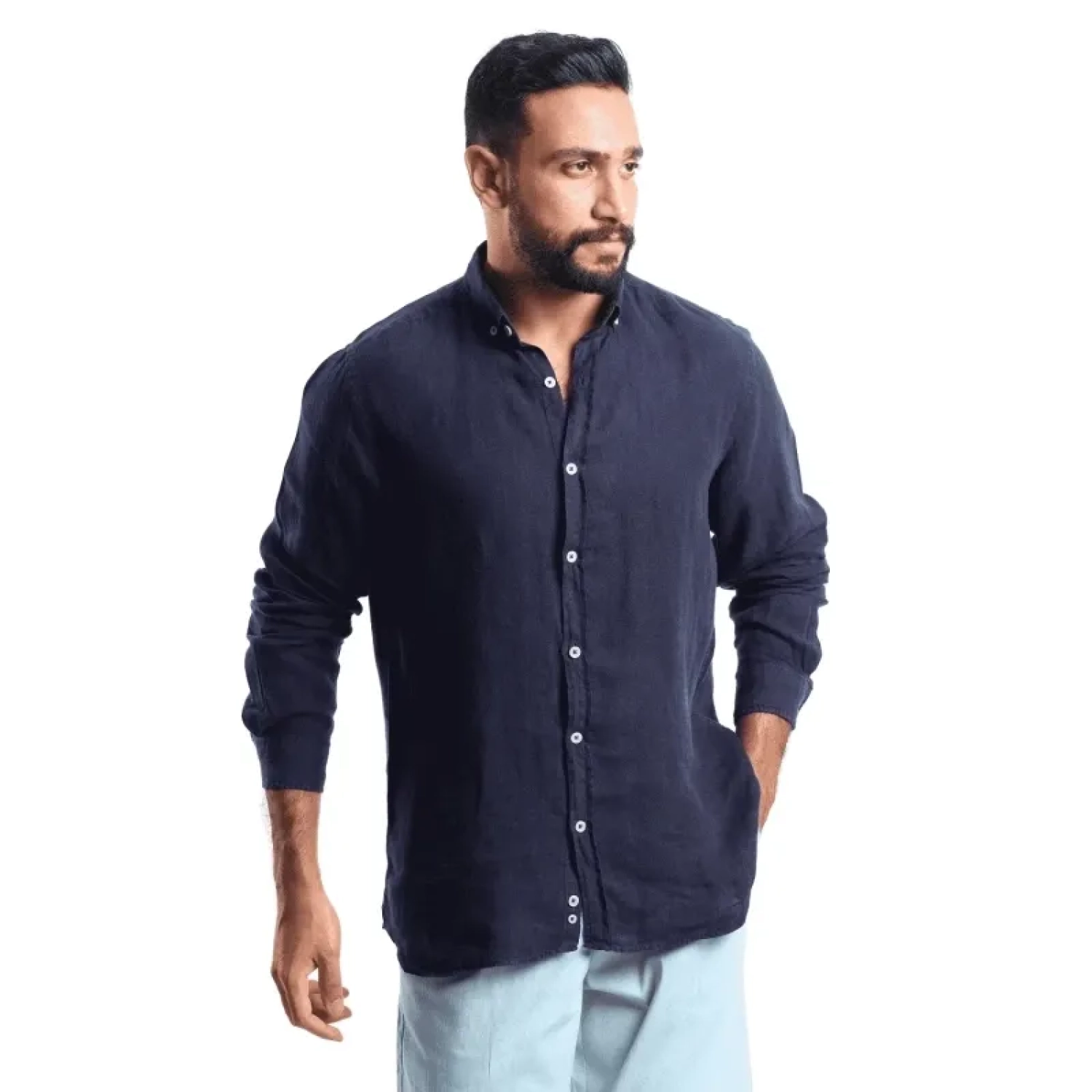 قميص كتان 100% أنيق ومريح للعمل أو الإطلالات اليومية.