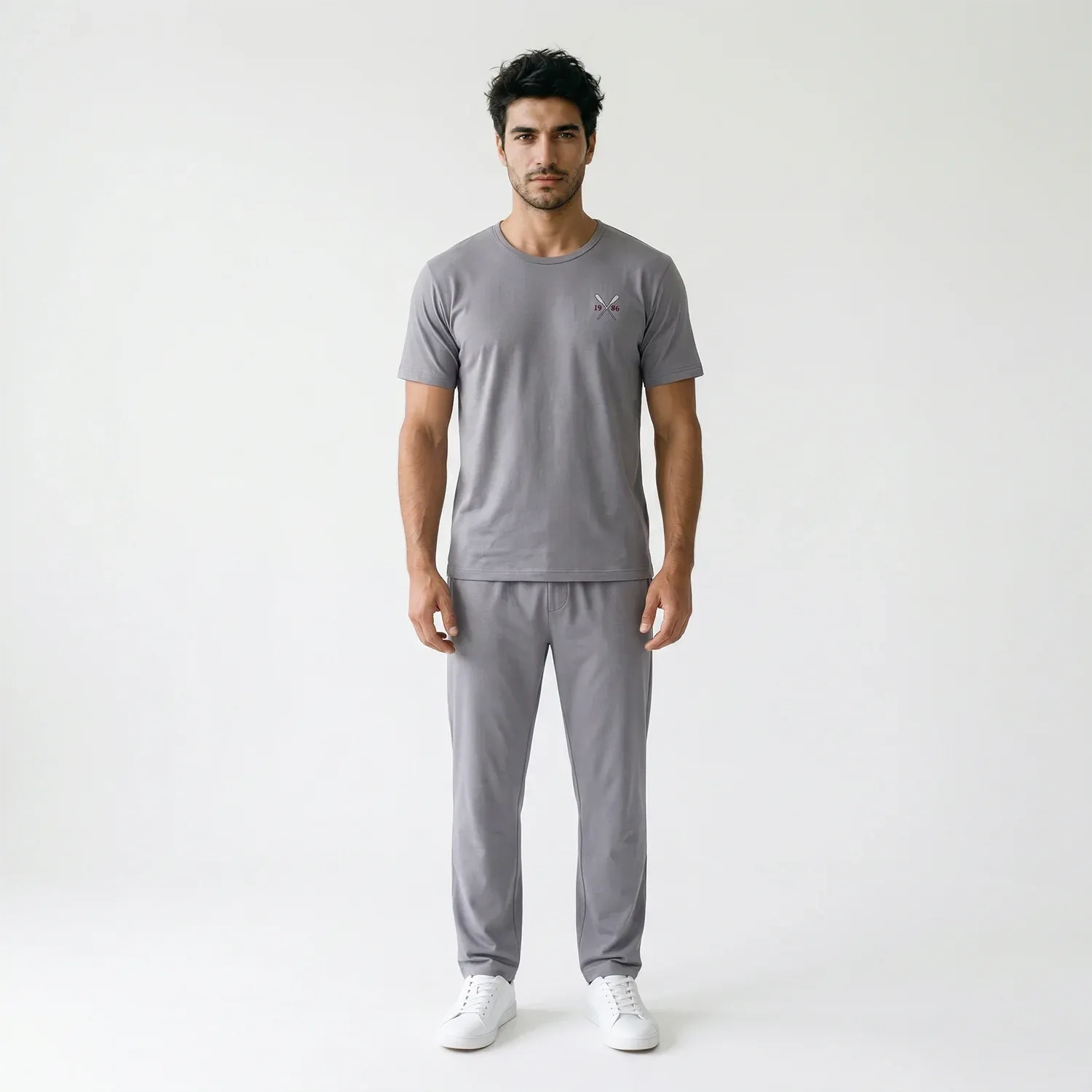 طقم بيجاما رجالي بأكمام قصيرة وبنطال - طقم ملابس نوم ناعم وخفيف الوزن للبالغين - ملابس مريحة للارتداء ليلاً أو في المنزل