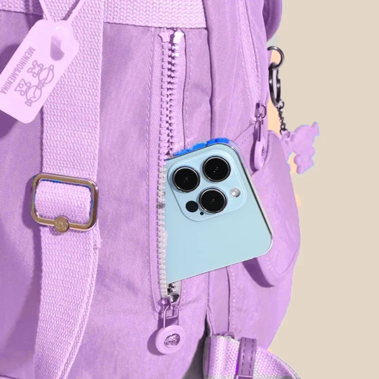 مينينو آند مينينا علامة تجارية برازيلية تشتهر بجودتها العالية وتصميمها العصري. حقيبة ظهر كاندي بوب بلون أرجواني ناعم، بتصميم رقيق وخفيف، مثالية للأيام الدراسية أو النزهات غير الرسمية، تتميز بجيب أمامي وأحزمة مريحة وسلسلة مفاتيح أنيقة. الأبعاد: 40×29×16 سم.