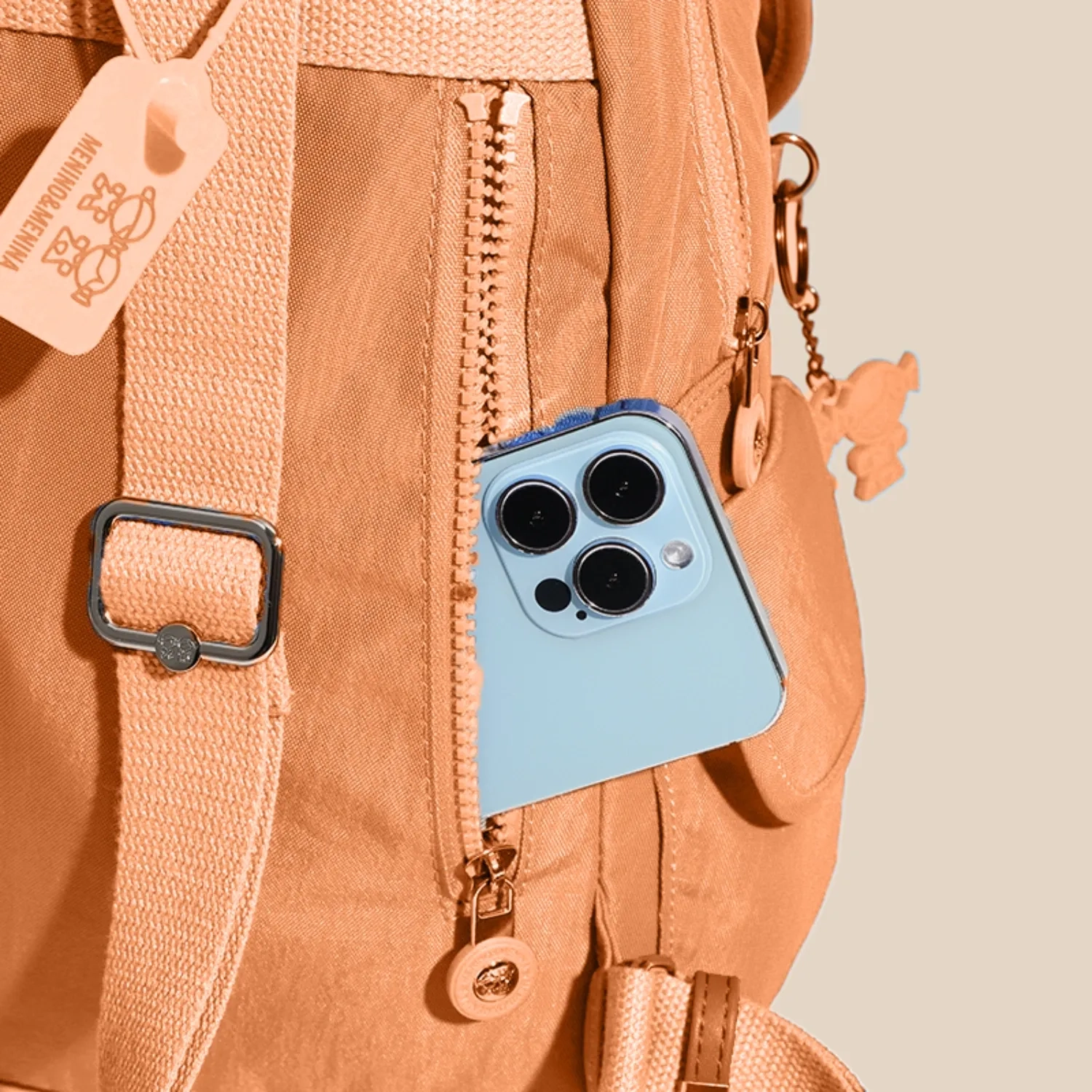 مينينو آند مينينا علامة تجارية برازيلية تشتهر بجودتها العالية وتصميمها العصري. حقيبة ظهر "كاندي بوب" برتقالية اللون، بلمسة نهائية غير لامعة وتصميم عصري، تتميز بجيب أمامي بسحاب، وأحزمة قابلة للتعديل، وسلسلة مينينو آند مينينا الحصرية. الأبعاد: 40×29×16 سم.