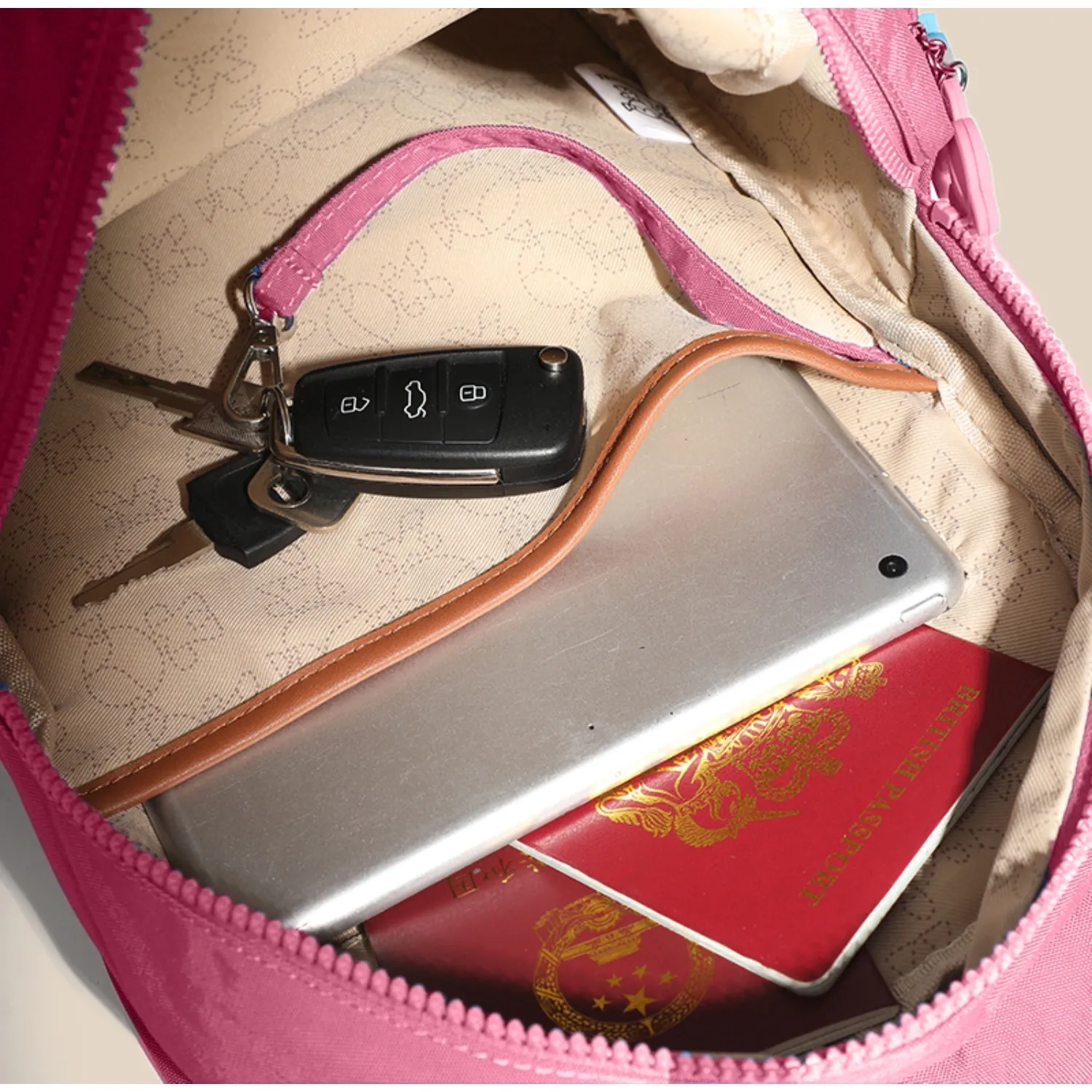 مينينو آند مينينا علامة تجارية برازيلية تشتهر بجودتها العالية وتصميمها العصري. حقيبة ظهر كاندي بوب الوردية بتصميم مرح وأنثوي، تتميز بمساحة داخلية واسعة وسحاب أمامي عملي وتفاصيل جذابة. الأبعاد: 40×29×16 سم.