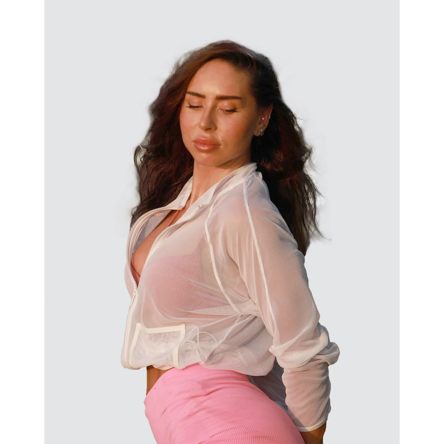 يتميز هذا الجاكيت بتصميم عصري بقصة قصيرة، ومصنوع من قماش مِيش ناعم وانسيابي ليمنحك خياراً أنيقاً وخفيف الوزن للتنسيق فوق ملابسك.