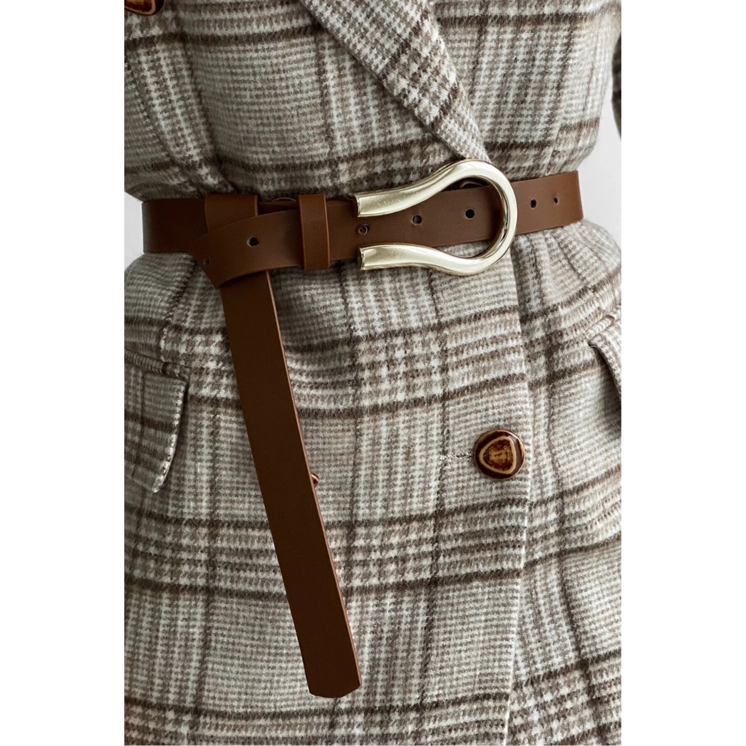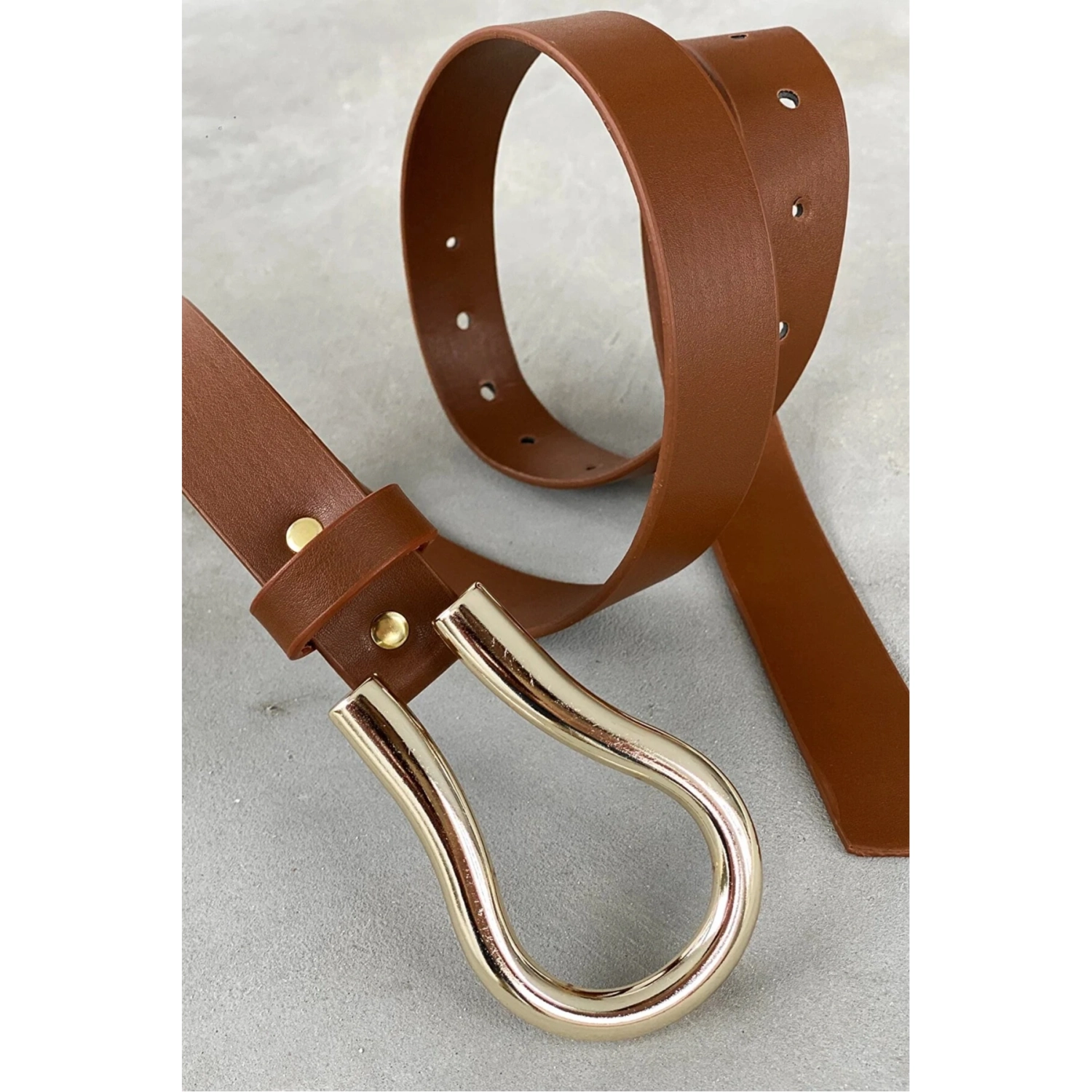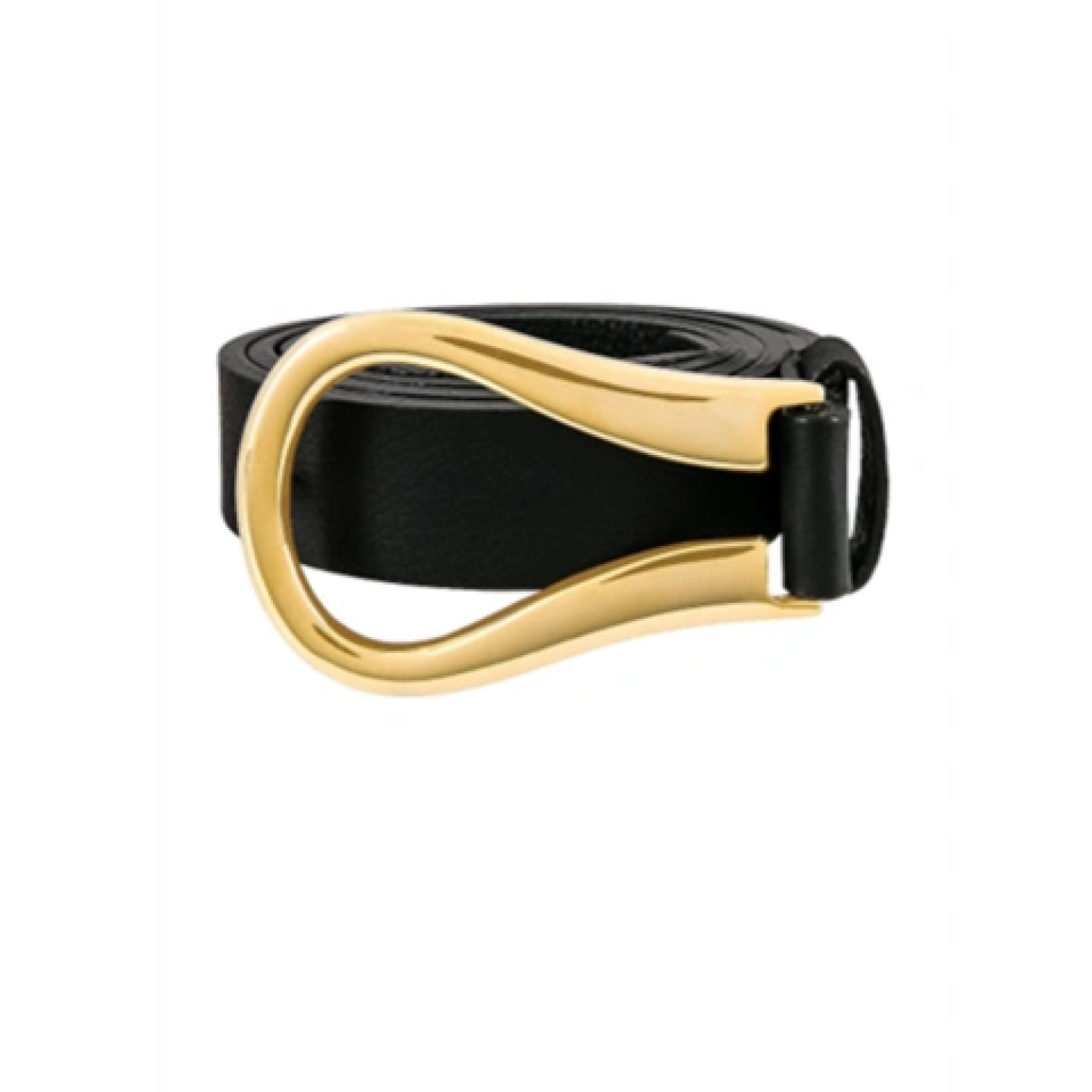 حزام نسائي من الجلد الصناعي بإبزيم بيضاوي أسود