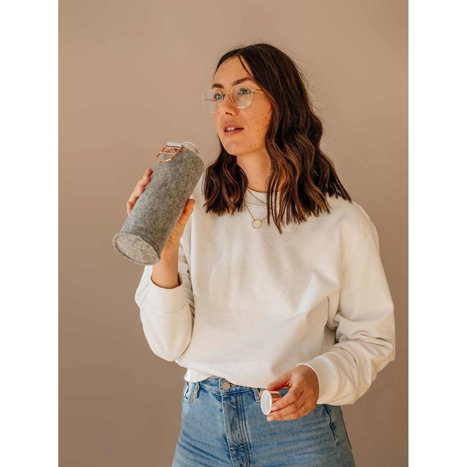 زجاجة فاخرة بسعة 750 مل مصنوعة من الزجاج باللون روز جولد. متينة وأنيقة، مثالية لحمل المشروبات بأناقة في المنزل أو المكتب أو أثناء التنقل.