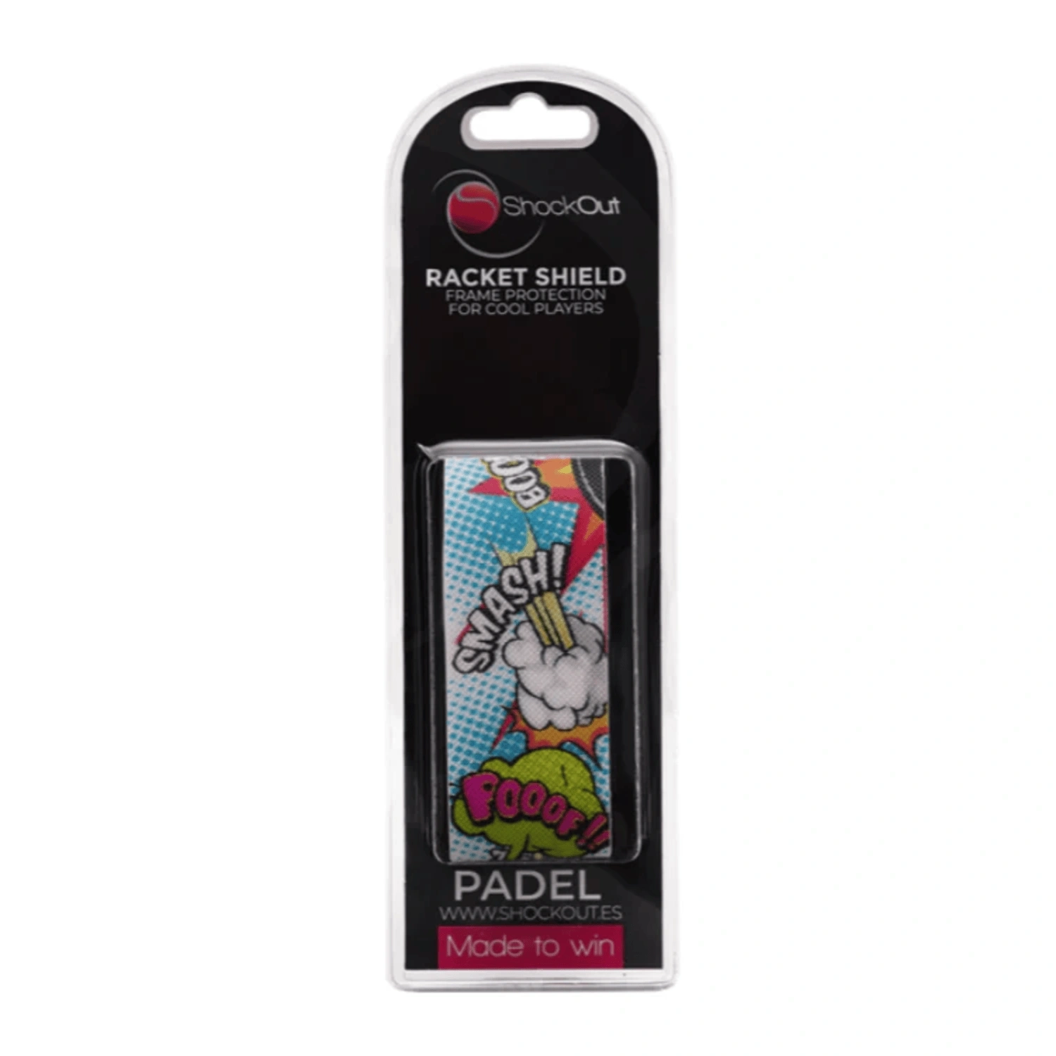 أكثر ما يلفت الانتباه في كفر مضرب البادل ShockOut Comic هو التصميم الأصلي والرائع الذي يقدمه. فهو يحتوي على زخارف وألوان مذهلة بحيث يصبح التخصيص أكبر، مما يمنح المضرب شخصية رائعة، وبالتالي، للاعب البادل. وقد تم استخدام مادة البولي فينيل كلوريد عالية المقاومة في تصميمه لتحسين الحماية.