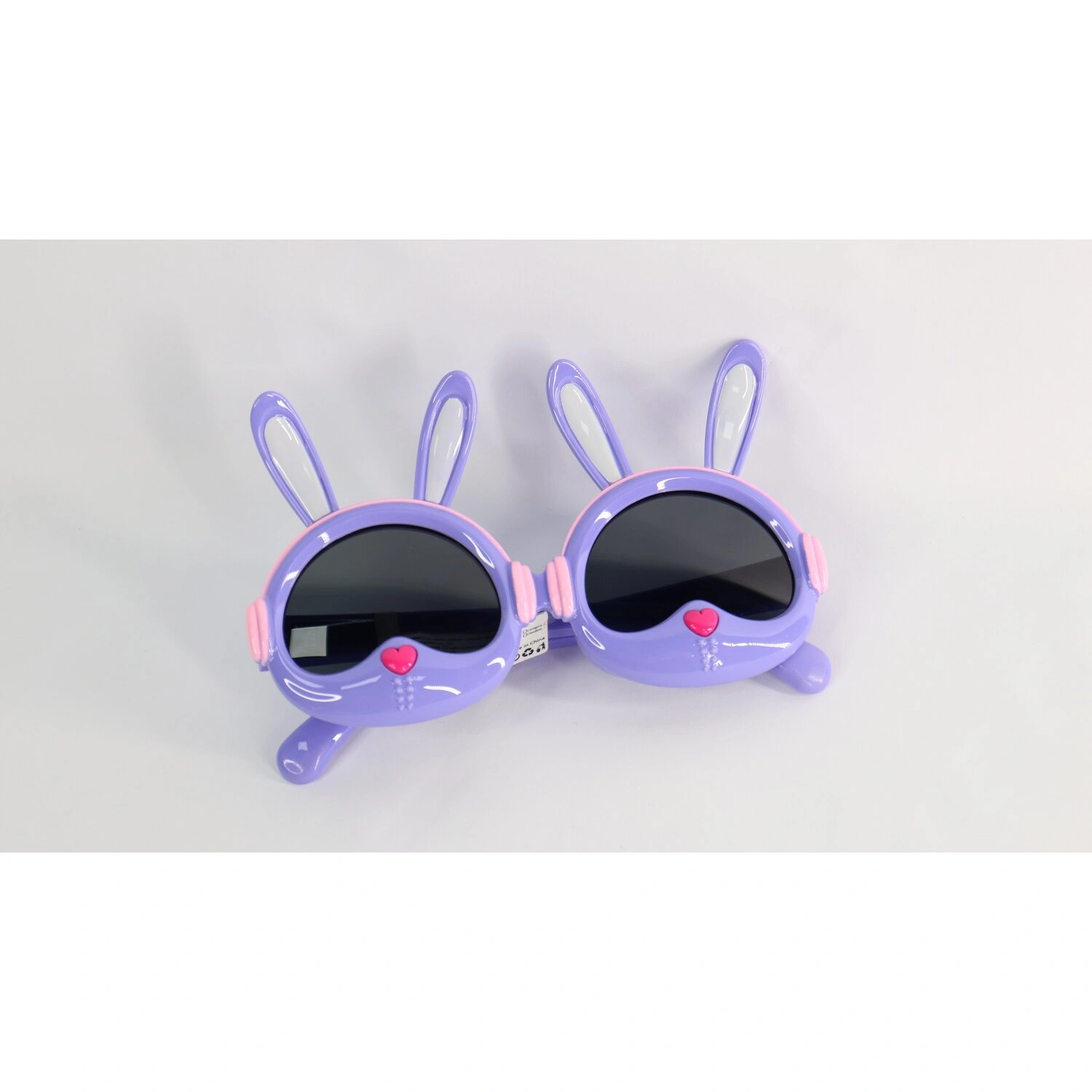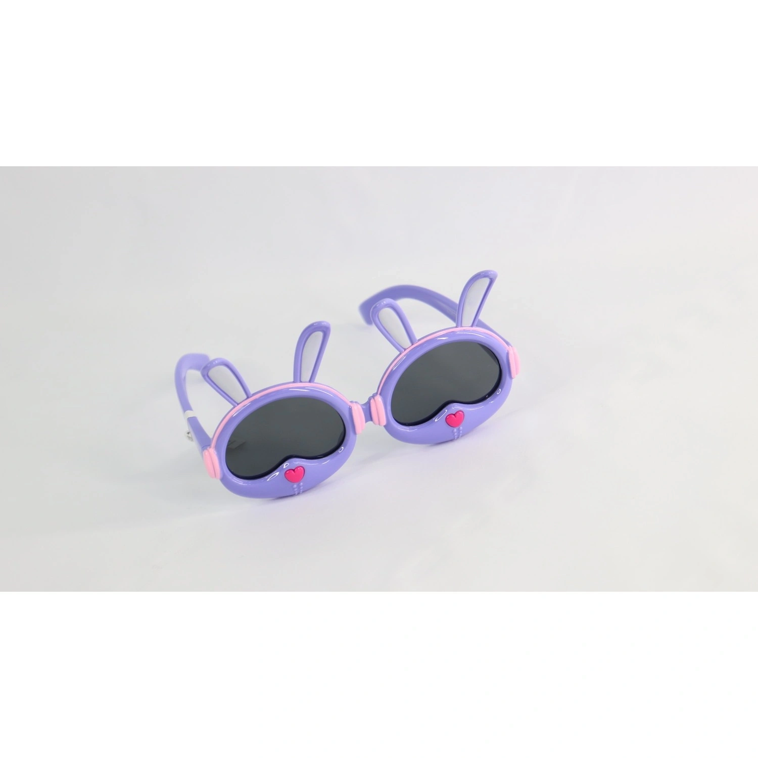 نظارات شمسية مرحة للأطفال بتصميم أرنب لطيف باللون البنفسجي. العدسات المستقطبة تقلل من الوهج وتوفر حماية مريحة وآمنة للعين أثناء الأنشطة الخارجية.
