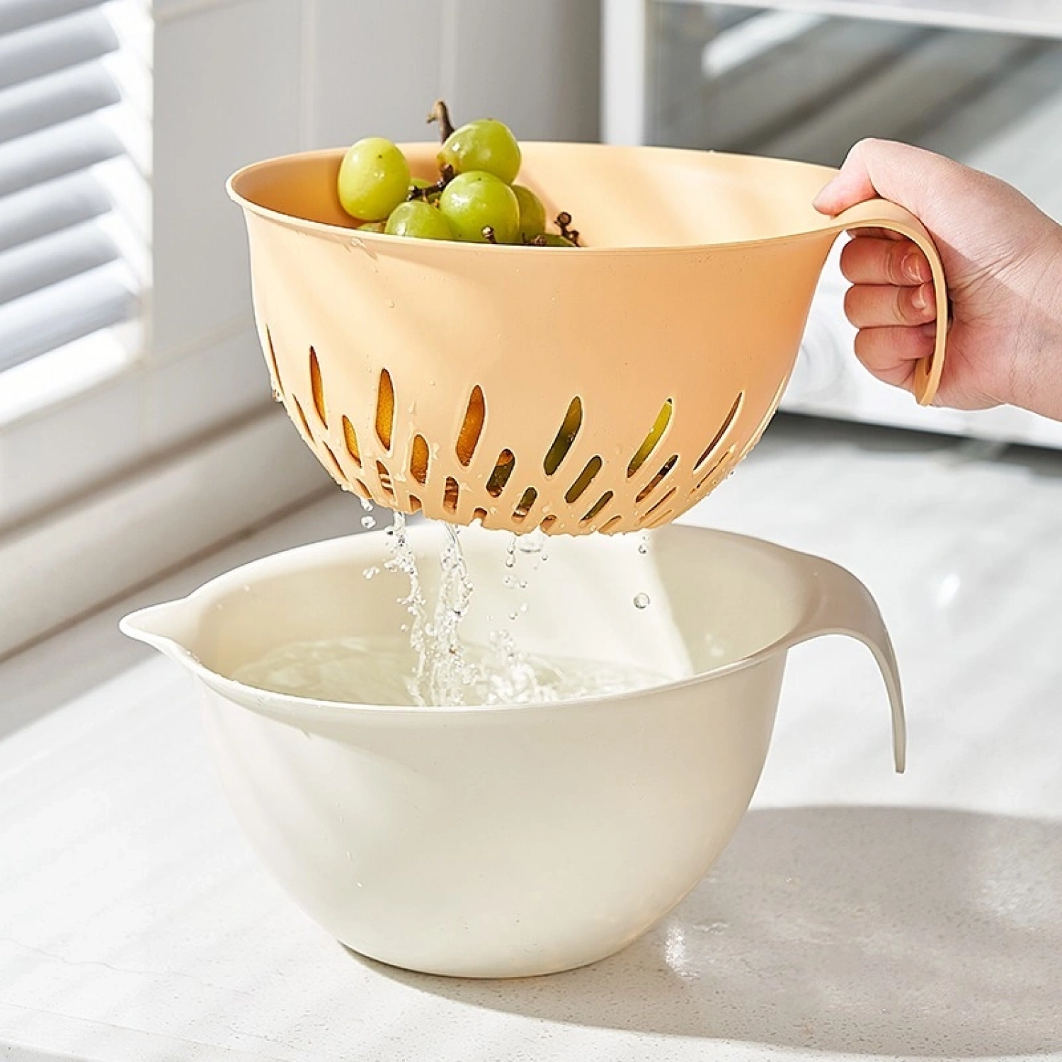 سلة مطبخ متعددة الاستخدامات وعملية بتصميم بطبقتين، مثالية لغسل وتصريف وتخزين الفواكه والخضروات والمعكرونة. متينة وخفيفة الوزن وسهلة التنظيف، مما يجعلها أداة أساسية للاستخدام اليومي في المطبخ.