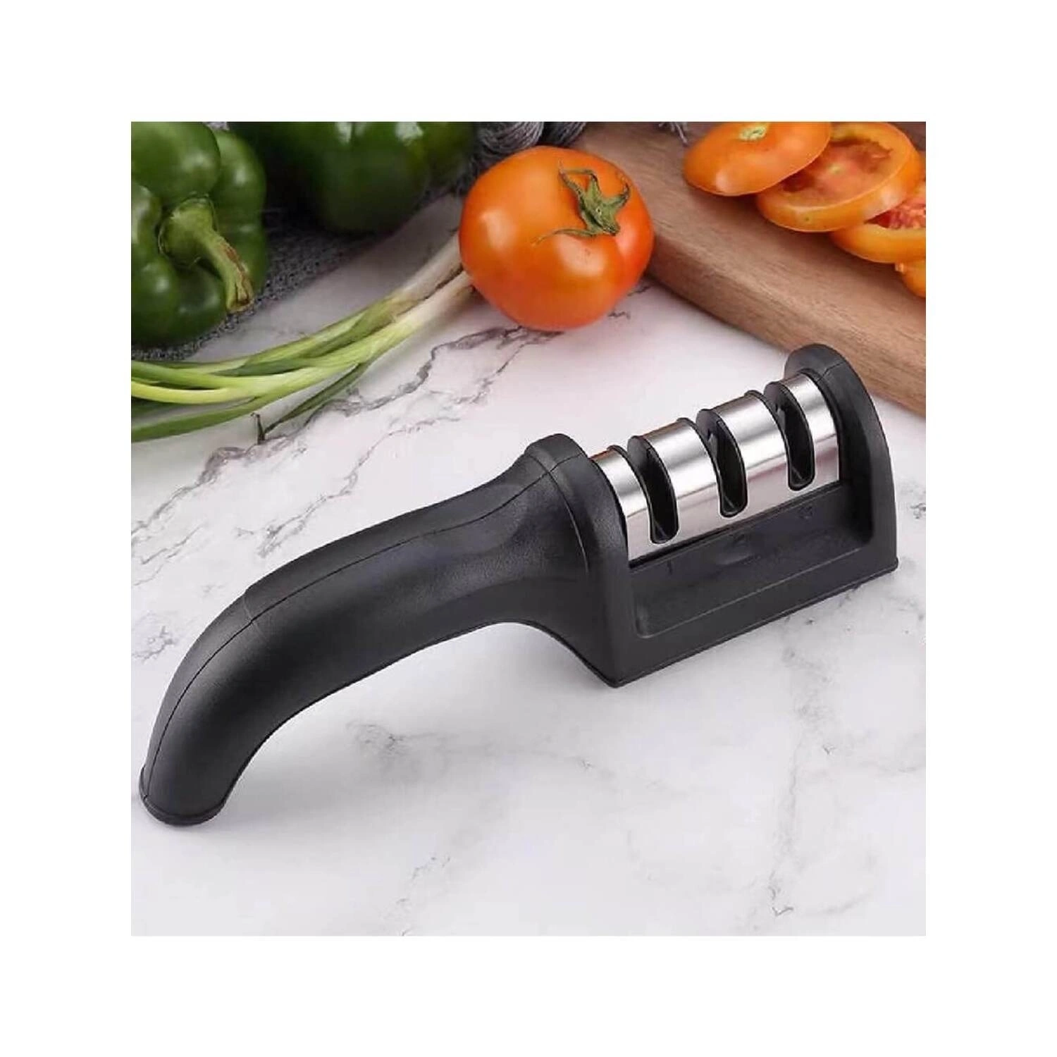مِسن سكاكين يدوي متعدد الوظائف بثلاث مراحل، أداة شحذ سريعة مع قاعدة مانعة للانزلاق