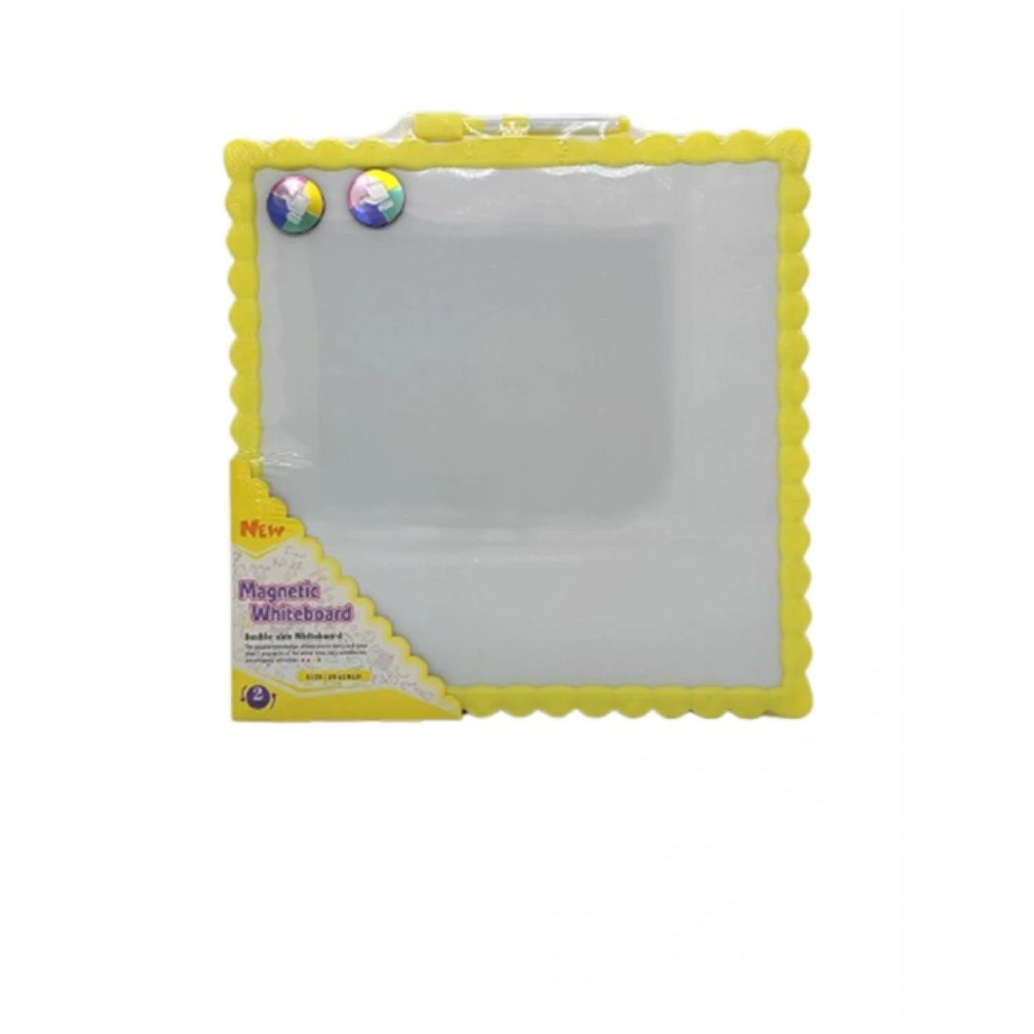 سبورة بيضاء مربعة ممتعة وتعليمية للأطفال. تأتي مع قلم لتسهيل الرسم والكتابة والأنشطة التعليمية. خفيفة الوزن وسهلة الحمل، مثالية للاستخدام في المنزل أو المدرسة أو أثناء السفر. الإطار الأصفر الساطع يضيف لمسة مبهجة.