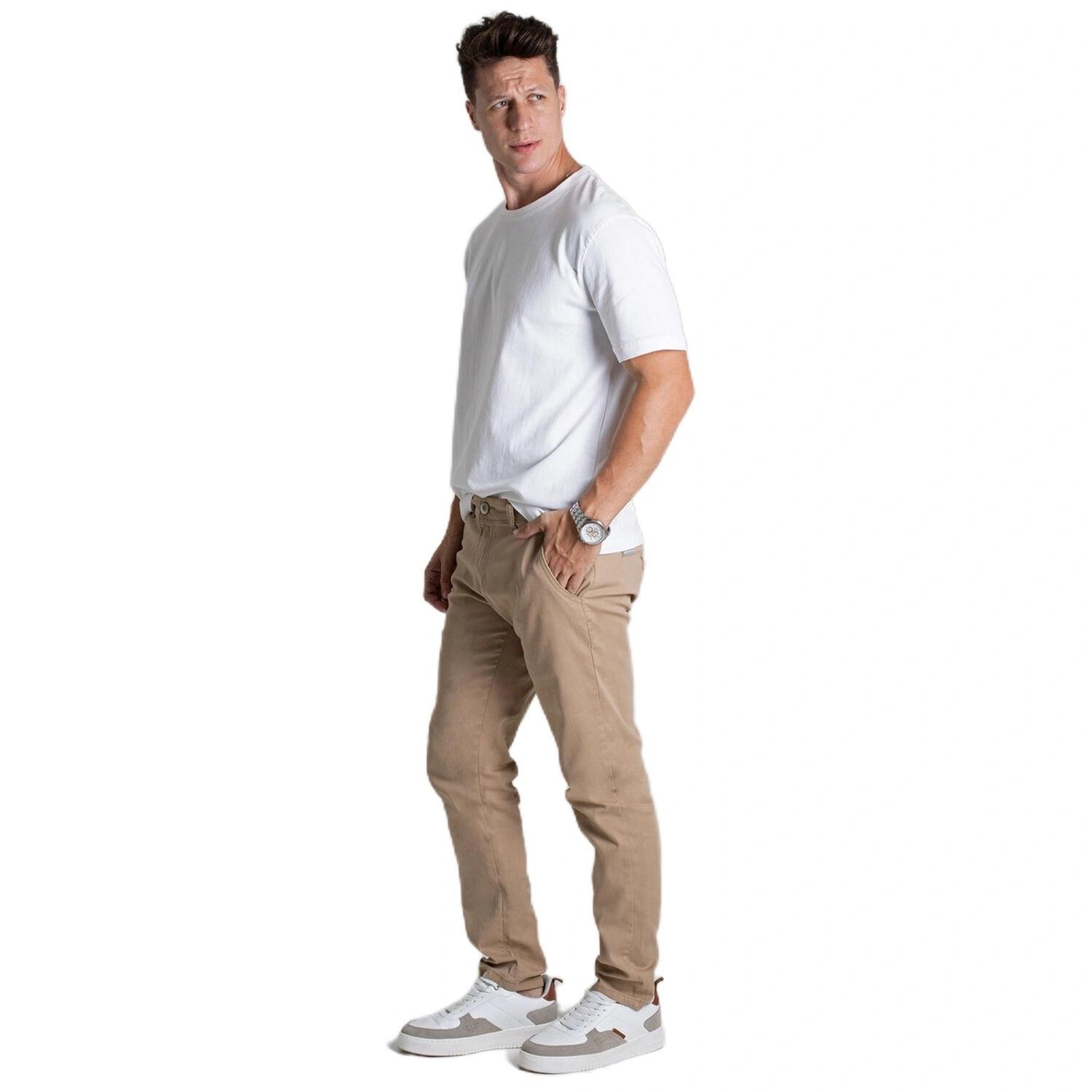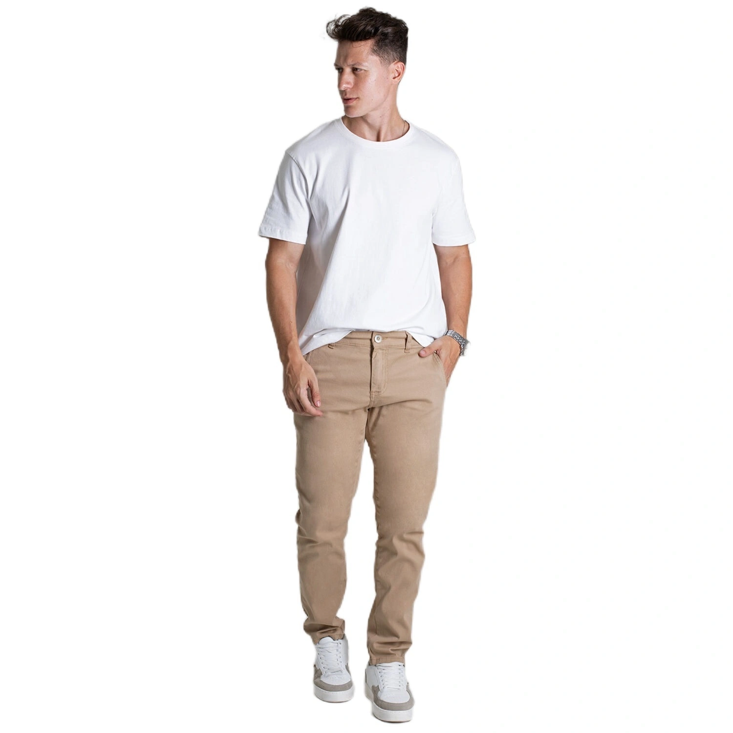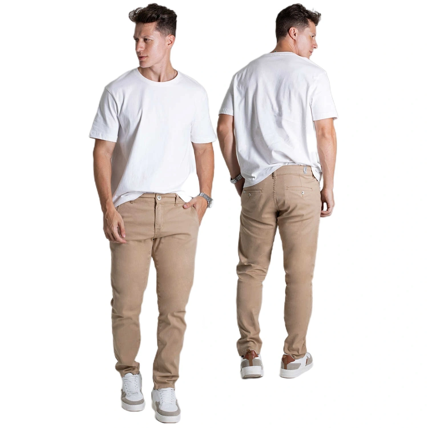 بنطلون جينز الرجالي المصنوع من قماش التويل - مجموعة كمفورت لاين- كاكي هو عنصر أساسي متعدد الاستخدامات في خزانة الملابس، حيث يجمع بين الأسلوب العصري والراحة طوال اليوم. تم تصميم هذا البنطال بقصّة مريحة، ويوفر شكلًا ظليًا مُصممًا ومرنًا، مما يجعله مثاليًا للمناسبات غير الرسمية وغير الرسمية الأنيقة. مصنوع من مزيج من الأقمشة الفاخرة (98% قطن، 2% كتان)، ويوفر التهوية والمتانة والشعور الناعم، مما يضمن ارتداءً يدوم طويلاً. يتضمن التصميم العملي جيوبًا أمامية مائلة وجيوبًا خلفية، مما يضيف لمسة من الرقي والوظائف إلى المظهر. يتميز هذا البنطال بإغلاق بسحاب وزر مع حلقات حزام، ويوفر ملاءمة آمنة وقابلة للتعديل. تعزز الخياطة المتناغمة اللمسة النهائية المكررة بشكل عام، مما يجعله إضافة سهلة لأي زي.