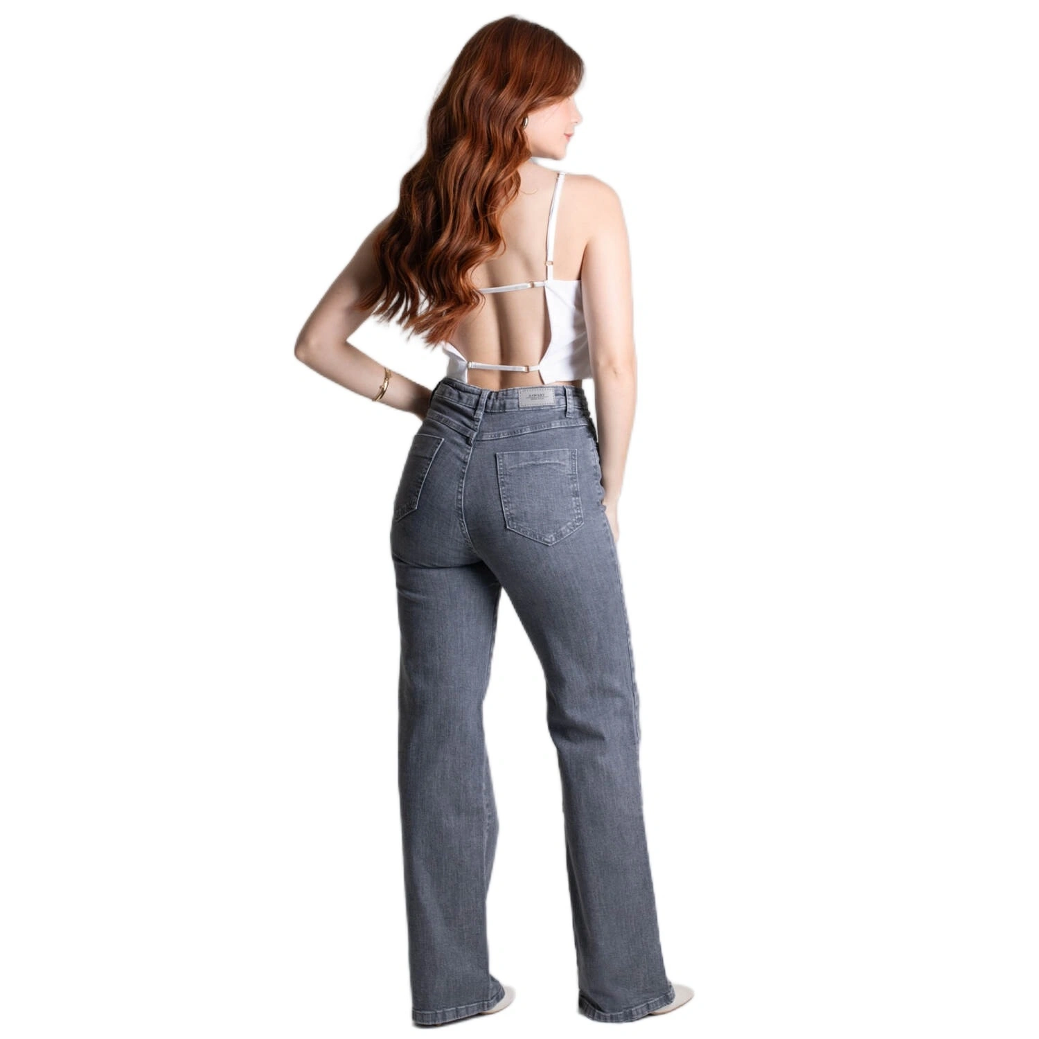 بنطلون جينز نسائي واسع الساق - رمادي داكن