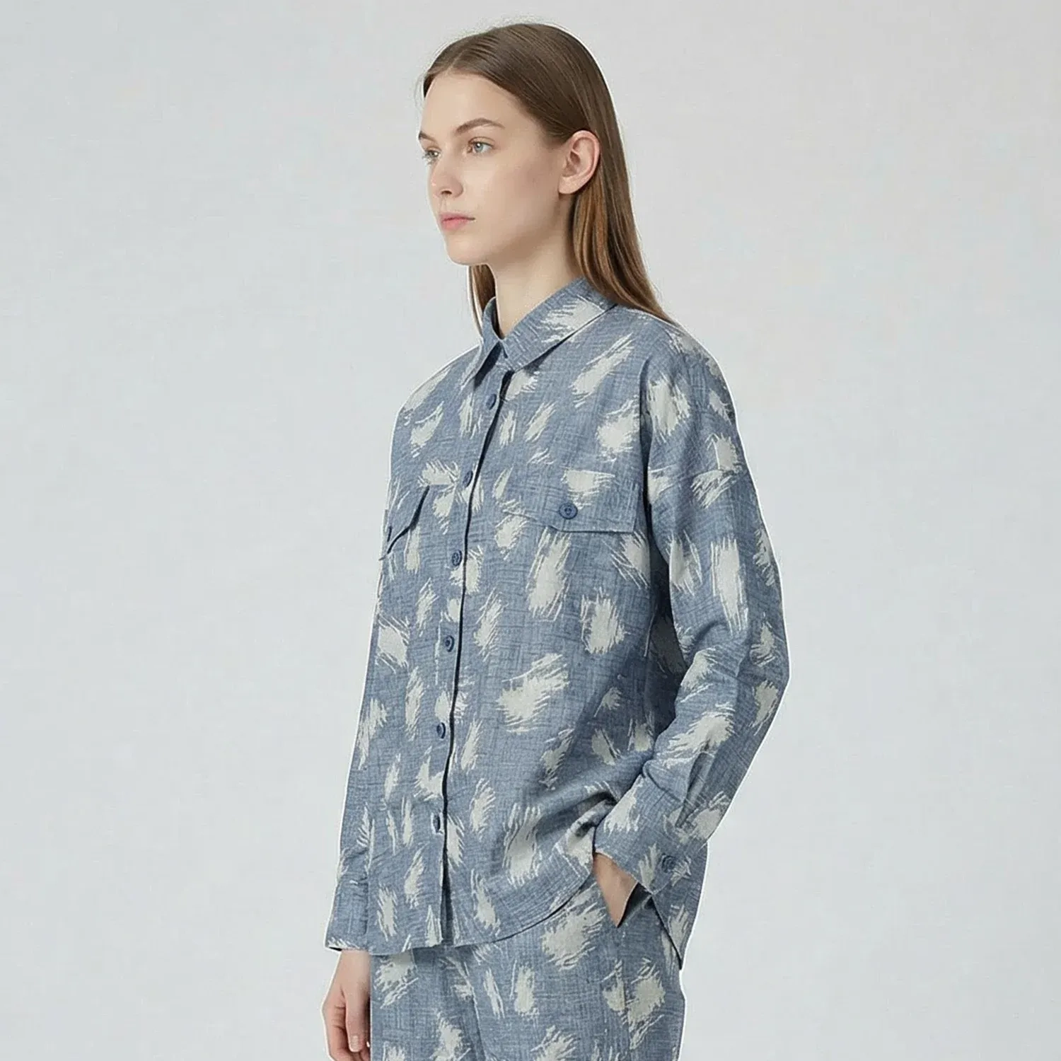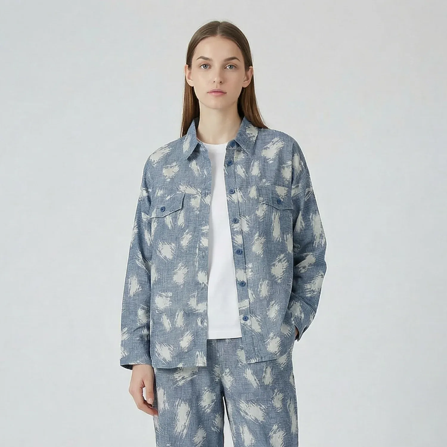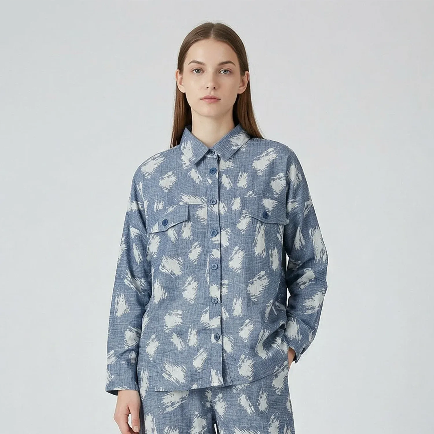 يتميز هذا القميص النسائي العصري باللون الأزرق مع نقوش بيضاء لمسة حديثة ومنعشة لإطلالتك اليومية. يجمع بين التصميم الأنيق والقصّة المريحة، مما يجعله مثاليًا لكل من الإطلالات الكاجوال والكاجوال الذكية.
