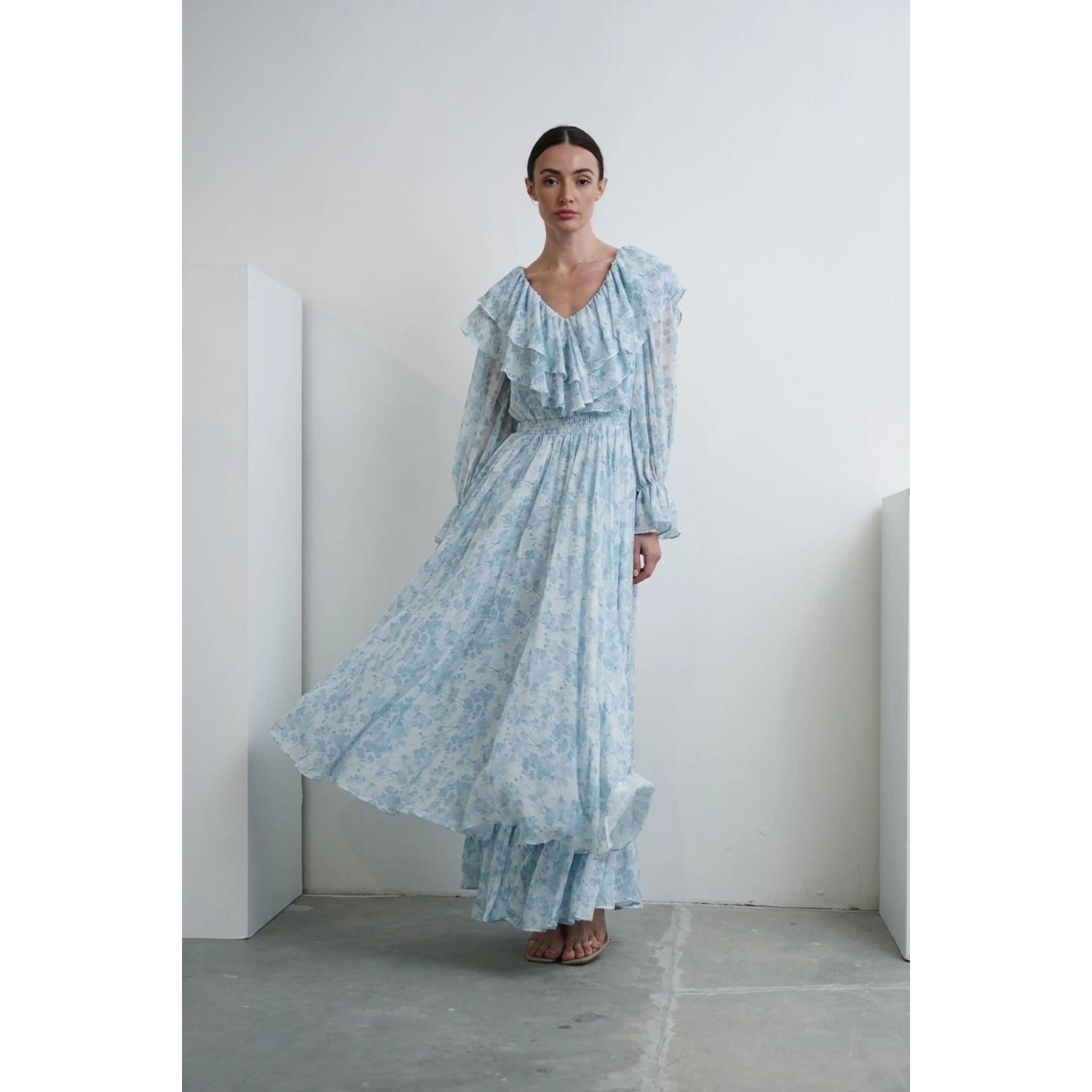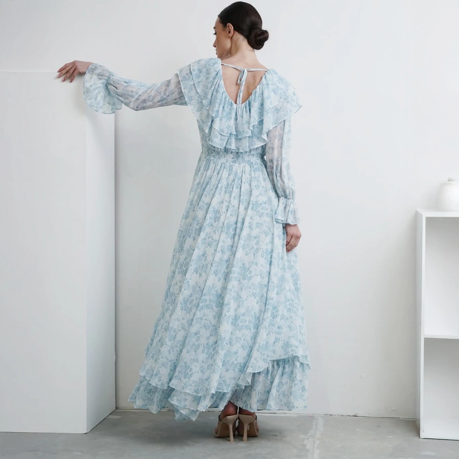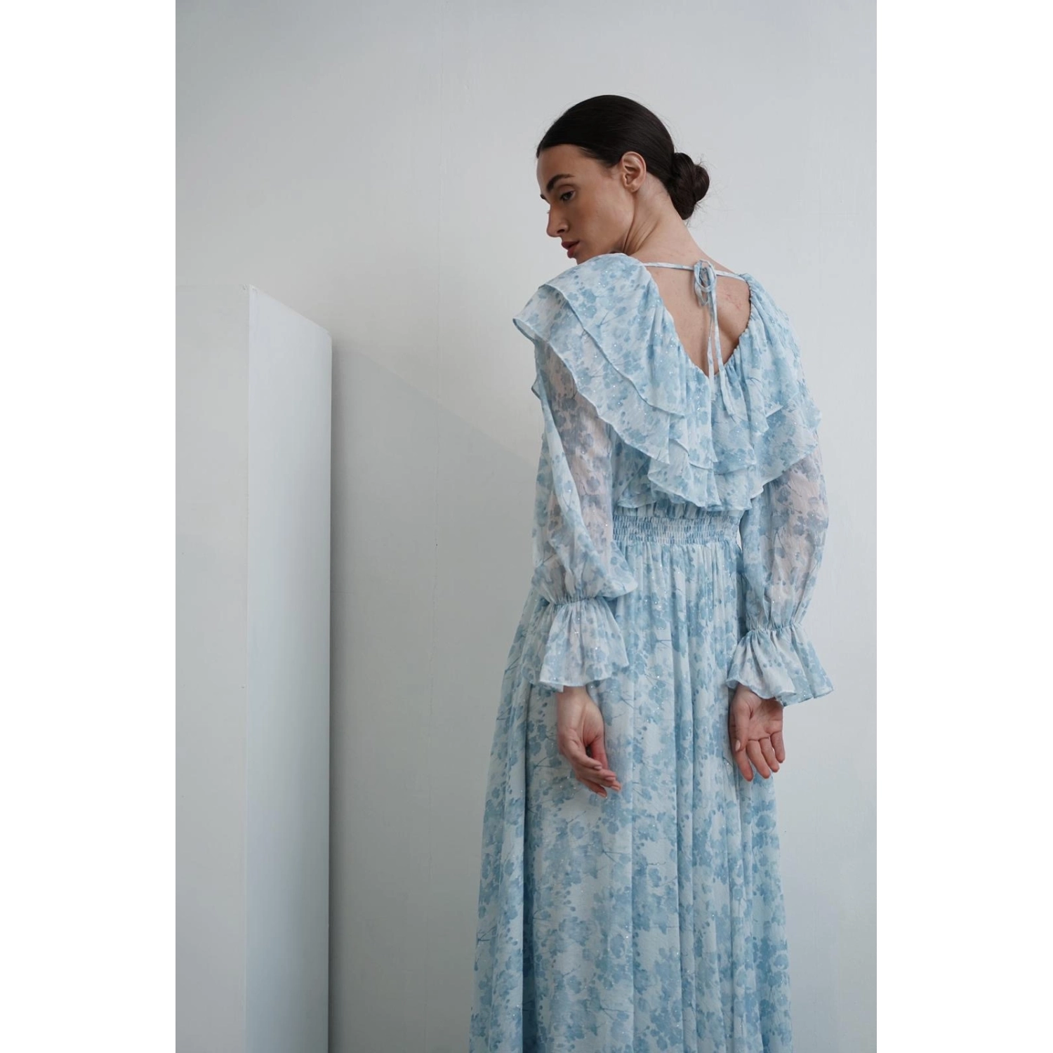 فستان مزخرف بأزهار باللون الأزرق