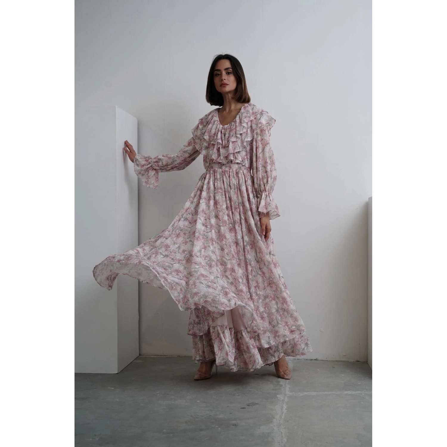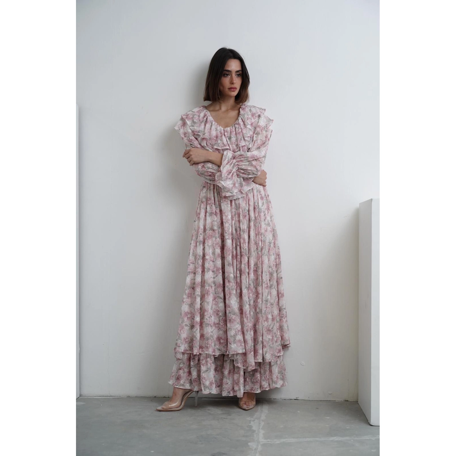 فستان مزخرف بأزهار - وردي