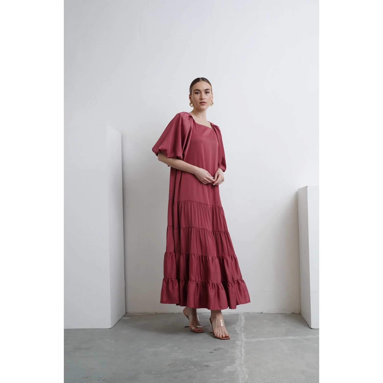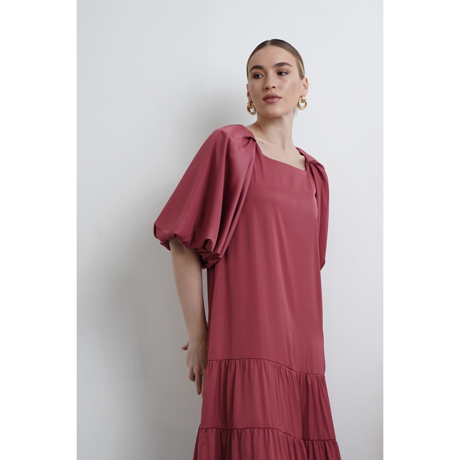 فستان متعدد الطبقات بأكمام منفوشة - وردي