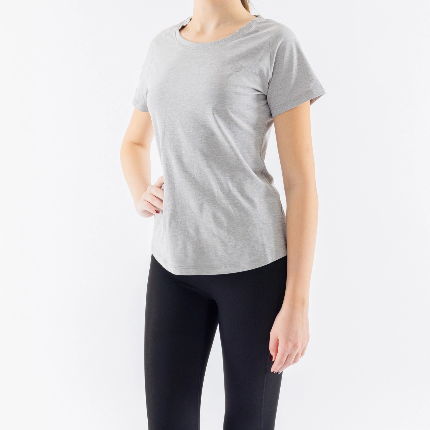 تي شيرت نسائي - رمادي الفاتح الياف صناعية - 100%