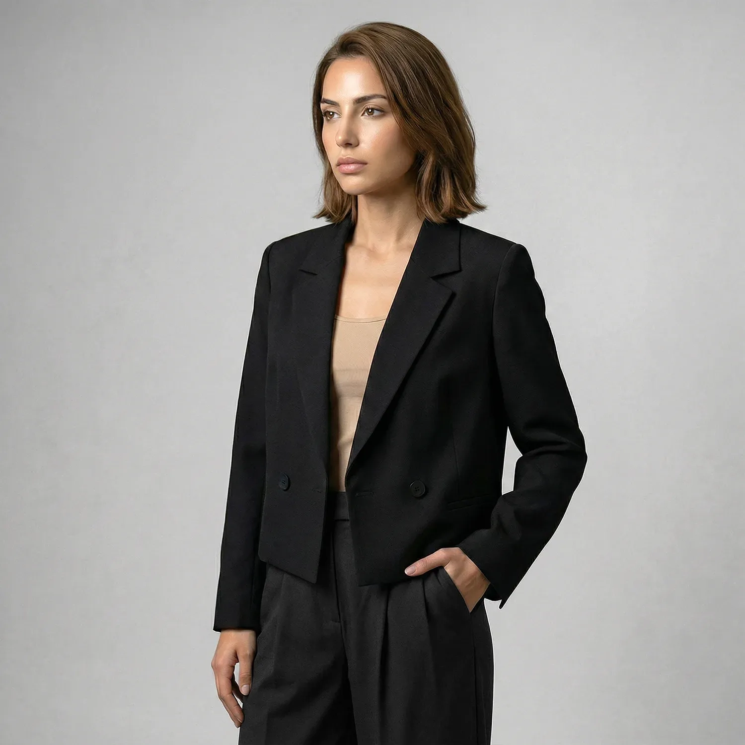 تم تصميم هذا الجاكيت النسائي الرسمي ليمنحك إطلالة أنيقة ومرتبة تناسب بيئة العمل والمناسبات الرسمية. يتميز بتصميم أنيق وسهل التنسيق يضيف لمسة احترافية لأي إطلالة. يمكن ارتداؤه بمفرده أو تنسيقه مع بنطال رسمي مطابق للحصول على إطلالة بدلة متكاملة. متوفر بـ 3 ألوان كلاسيكية تناسب مختلف الأذواق.
