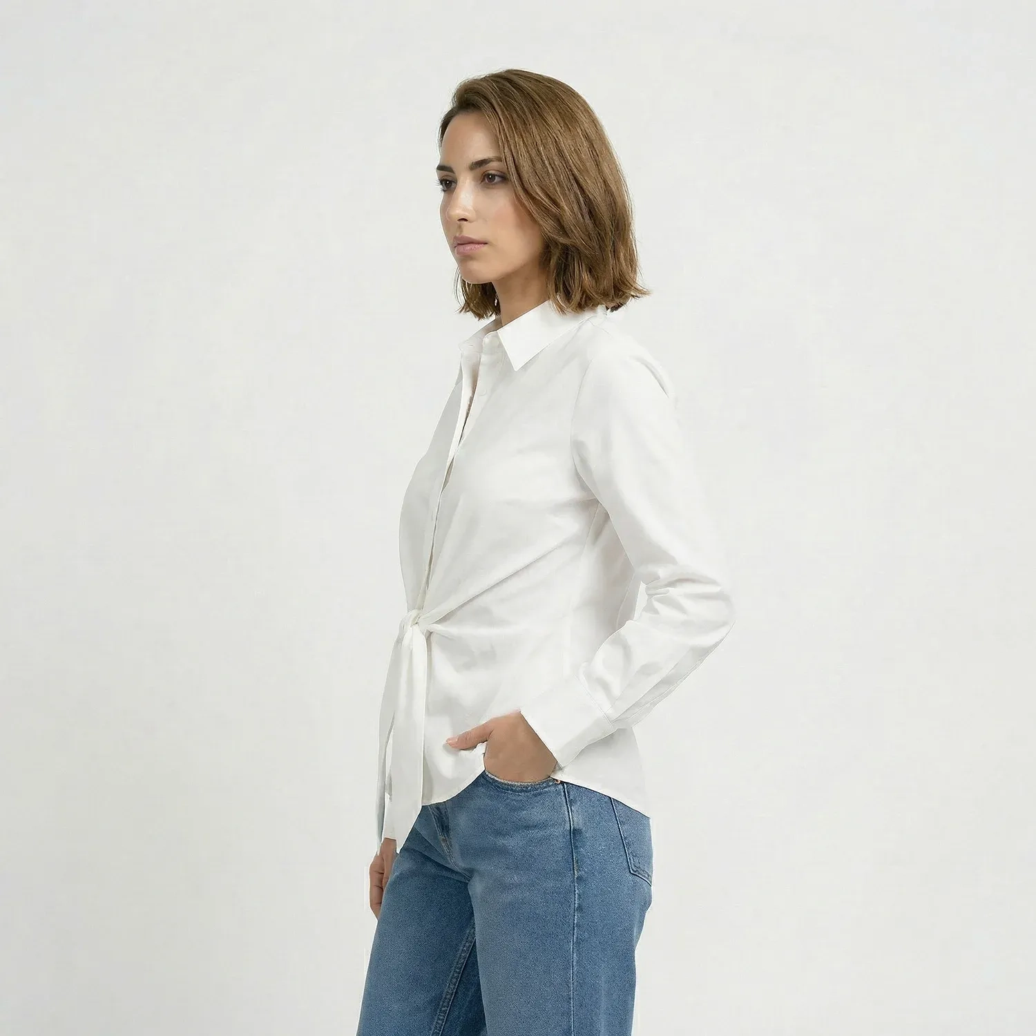 مم هذا القميص الأنيق ذو الأكمام الطويلة ليكون قطعة أساسية خالدة في خزانة ملابسك، فهو يجمع بين الأناقة والراحة والتنوع. بفضل قصته البسيطة وقصته الجذابة، يُعد مثاليًا للارتداء اليومي والإطلالات الأكثر أناقة. يسهل تنسيقه مع البناطيل أو التنانير أو ارتدائه تحت السترات، مما يجعله مناسبًا للانتقال بسلاسة من الإطلالات الكاجوال إلى الإطلالات شبه الرسمية. قطعة لا غنى عنها تمنحك خيارات تنسيق لا حصر لها.