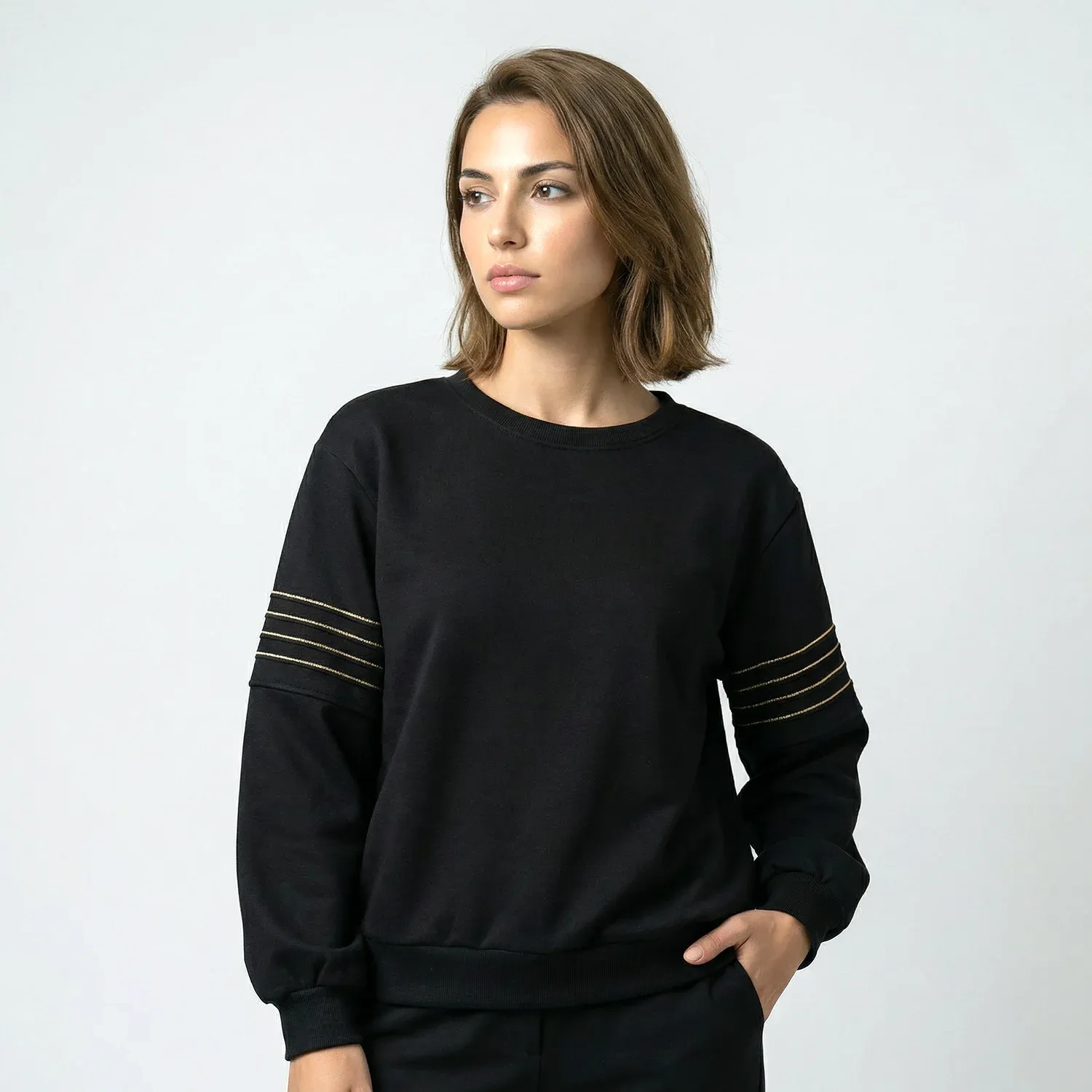 صُممت هذه البلوزة المريحة لارتداء يومي سهل، حيث تجمع بين البساطة وتفاصيل التصميم الناعمة. وتتميز بوجود أربعة خطوط خياطة دائرية في منتصف الأكمام، مما يضيف لمسة فريدة وأنيقة على المظهر النظيف والبسيط. وبفضل كونها مريحة وسهلة التنسيق، تعد هذه البلوزة مثالية للإطلالات الكاجوال أو التنسيقات اليومية الأنيقة والمريحة. متوفرة بلون كلاسيكي واحد.