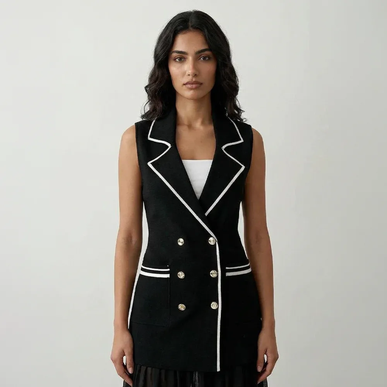 تميز هذا الفيست الأسود بتصميم أنيق وفريد يجعله مناسباً للعديد من المناسبات. بقصّته الراقية وشكله العصري، يضيف لمسة شيك ومتقنة لأي إطلالة، سواء كانت كاجوال أو رسمية. يمكن تنسيقه بسهولة مع البناطيل أو التنانير، أو ارتداؤه فوق القمصان والتوبات لإطلالة متعددة الاستخدامات وأنيقة.