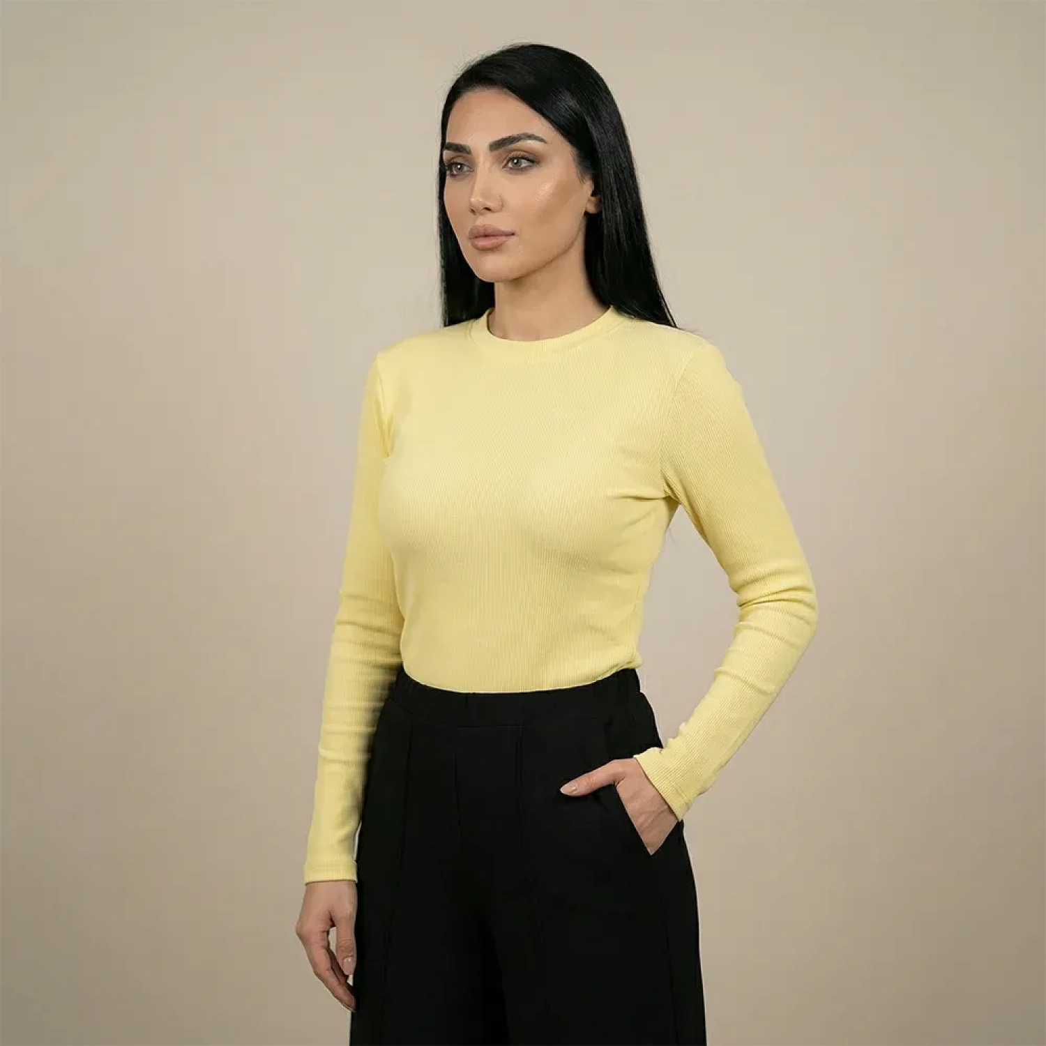 توب سادة ضيق بأكمام طويلة – نسائي – تصميم أنيق وبسيط وأساسي للاستخدام اليومي