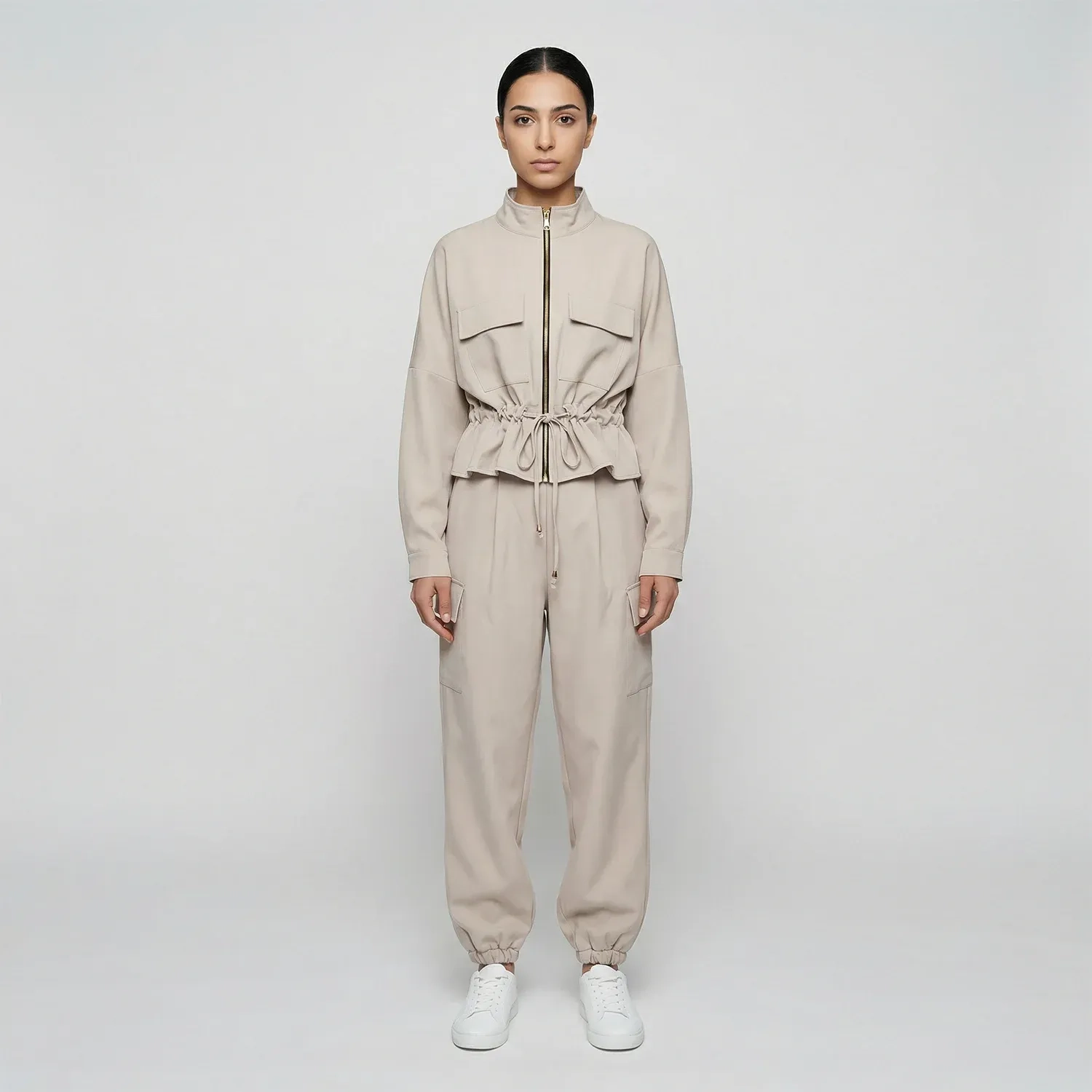 صُمم هذا الطقم النسائي المريح والعملي لارتداء يومي مريح مع الحفاظ على مظهر متناسق وأنيق. يتضمن الطقم جاكيت مزود بجيبين أماميين على الصدر مع بنطال "كارغو" مطابق، مما يوفر الراحة والعملية في آن واحد. تصميمه السادة والمتعدد الاستخدامات يجعله مثاليًا للاسترخاء، أو النزهات الكاجوال، أو التنسيقات اليومية الأنيقة والمريحة. متوفر بـ 4 ألوان أساسية، مما يجعله الخيار الأمثل للراحة العفوية والأسلوب العصري.